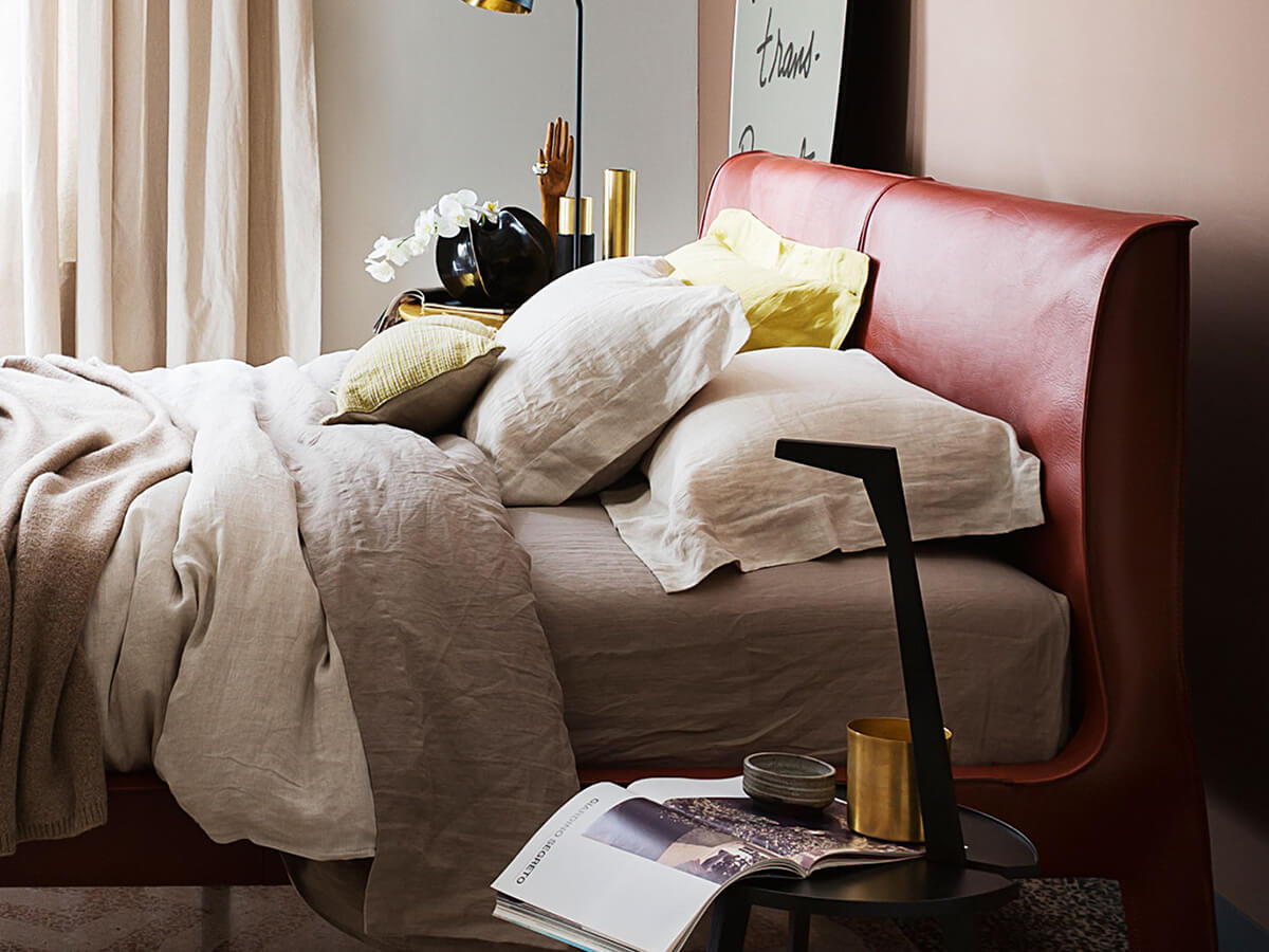 *Prezzo valido per la versione con testiera fissa per materasso 160x200 cm (non incluso) con rivestimento in cuoio e pelle – rete fissa a doghe inclusa (cod. L50 01 14 + 2 x S21 01).