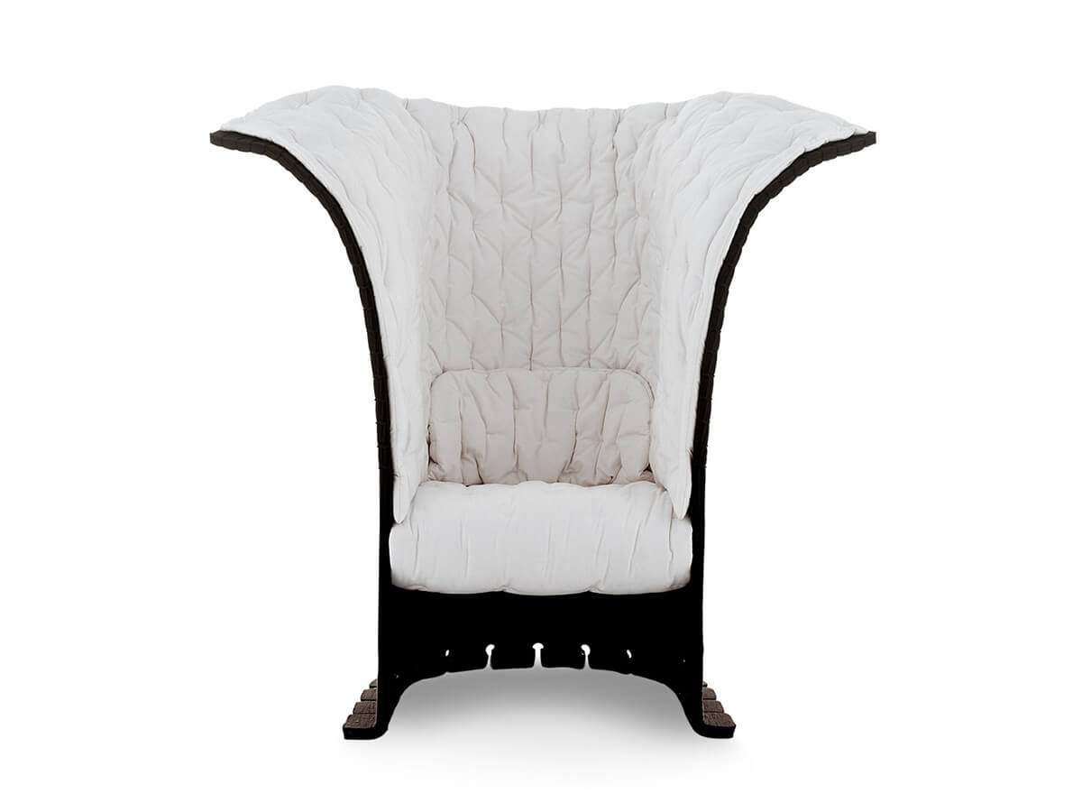 La poltrona Feltri di Cassina rientra nella collezione “I Contemporanei”. Disegnata nel 1987 da Gaetano Pesce, è espressione di ironia unita a superba qualità di design artigianale, collocandosi sul terreno ibrido di arte e utilità. Si tratta di un’opera unica, capace di distinguersi grazie allo schienale avvolgente e la seduta che allude alle sedie regali. L’infinita gamma di rivestimenti in tessuto disponibili amplifica al massimo la possibilità di personalizzare e sperimentare le soglie compositive di Feltri. Completamente realizzata in feltro di lana spessa, questa poltrona abbina uno schienale avvolgente e modellabile alla parte inferiore rigida e resistente. Un confortevole materasso trapuntato con ovatta di poliestere riveste l’interno per massimizzare la sensazione di comfort e morbidezza. Maestosa e ironica, Feltri è l’elemento d’arredo per chiunque ami sperimentare e spingersi ai confini del design iconico.