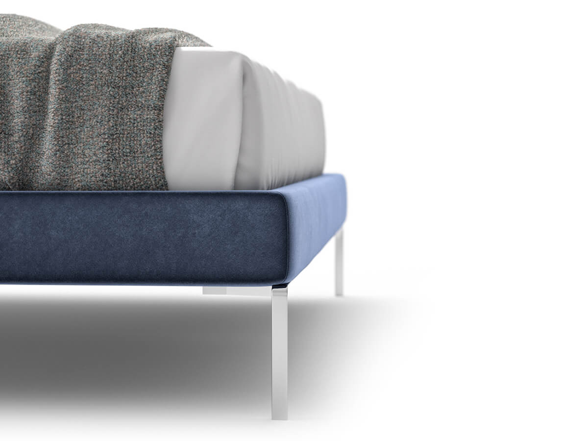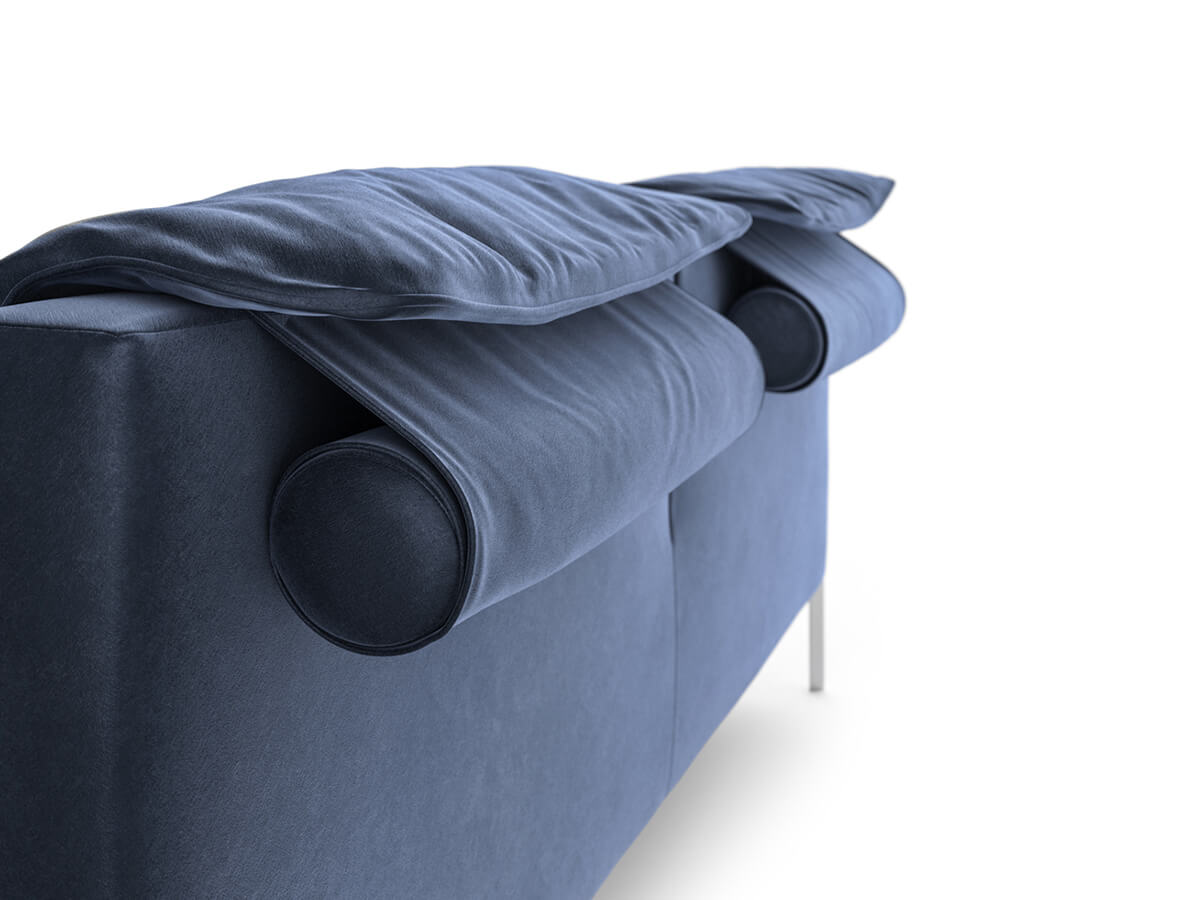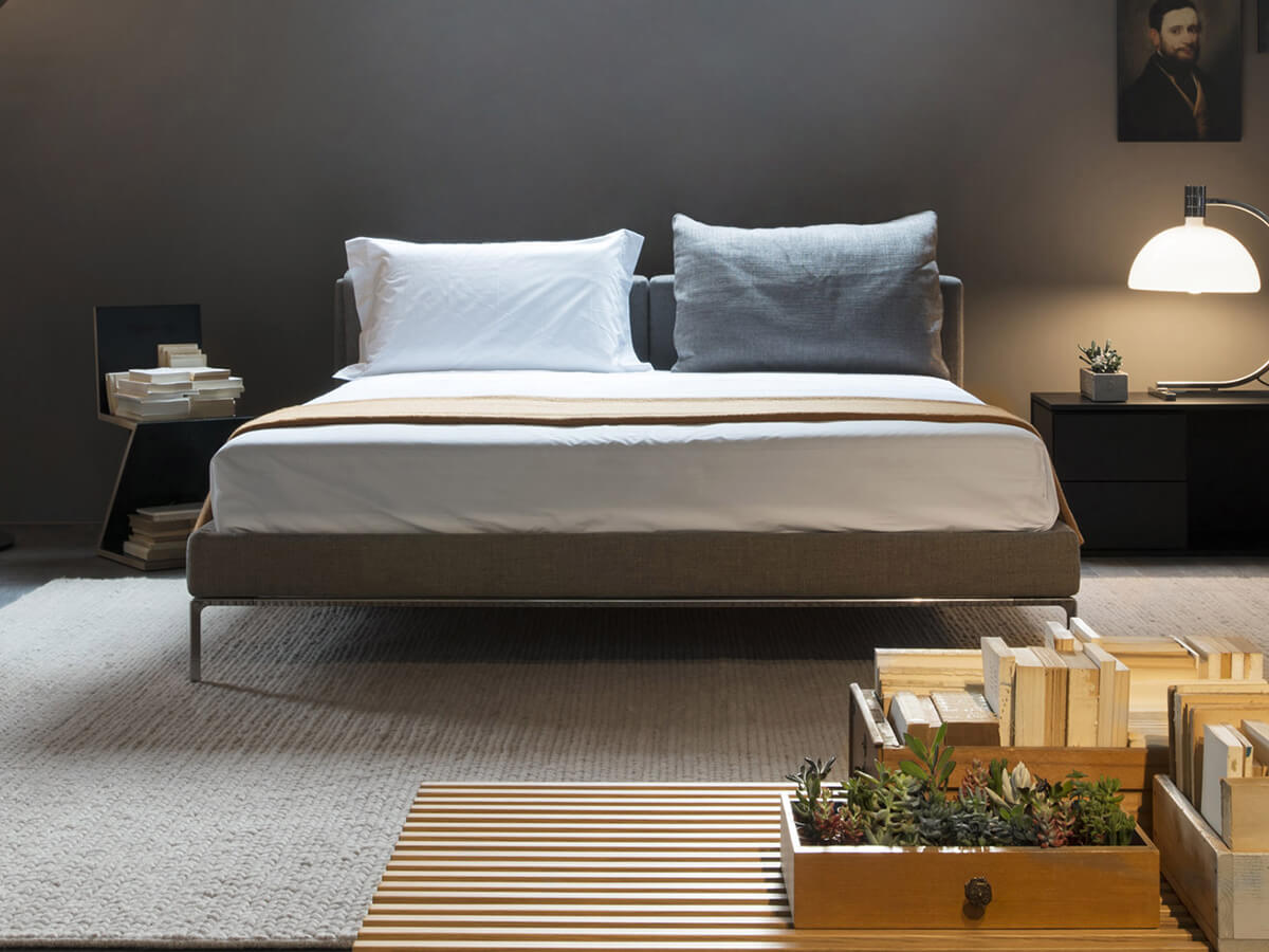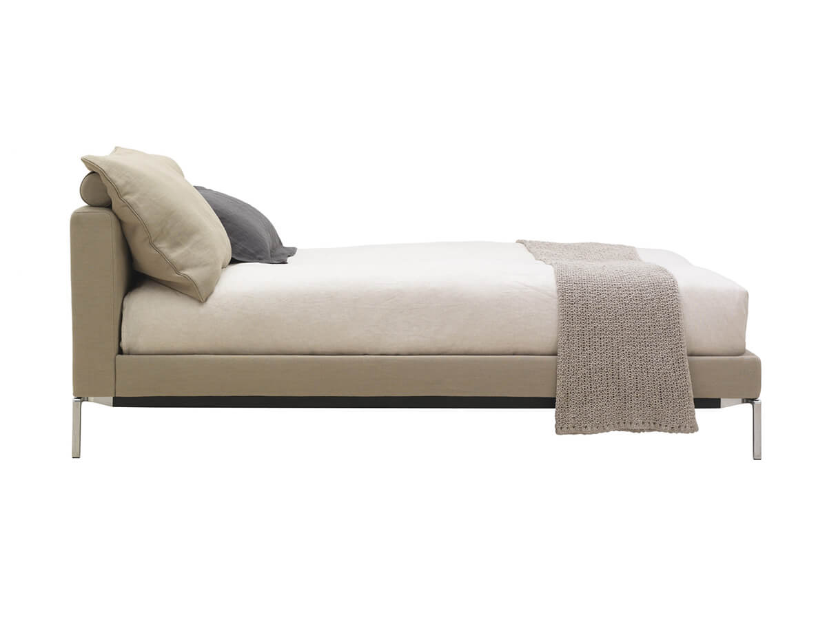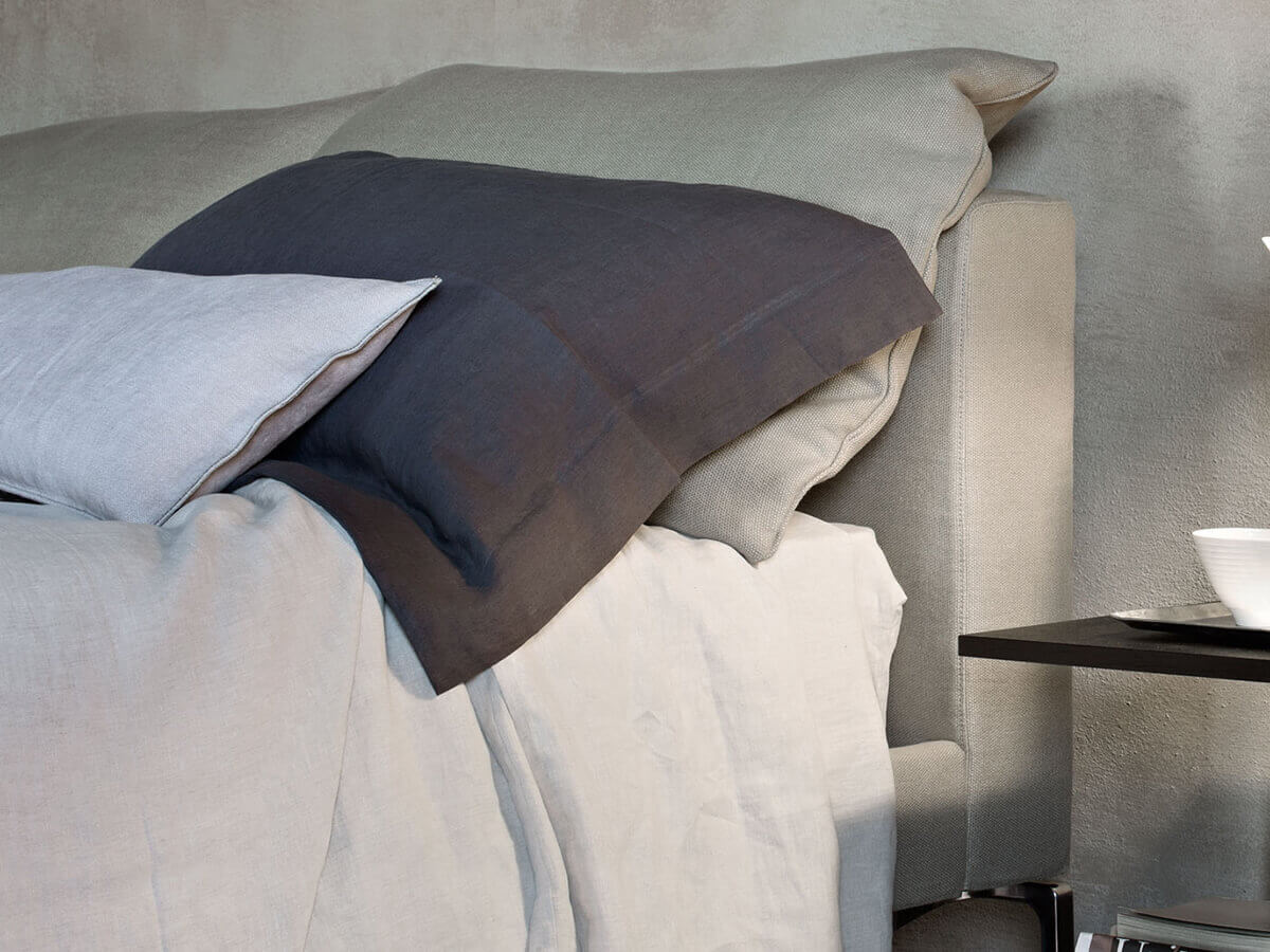 Dal genio di Piero Lissoni nasce il letto Moov, esempio vivente di come comfort e stile non smettano mai di trovare le proprie declinazioni in ogni ambiente della casa, dal soggiorno alla zona notte. Come altre opere del designer, questo modello si caratterizza per la scelta di associare elementi imbottiti di estremo confort e volume a strutture estremamente più essenziali e ridotte, dove viceversa si predilige il minimo impatto visivo tanto alla vista, quanto nel complesso delle forme d’insieme. Caratterizzante di Moov sono il giroletto e la testiera imbottiti, con rivestimento tessile sfoderabile oppure fisso in pelle. Sollevata da terra, la struttura acquista qui una linea ancor più minimal. A corredo della testiera, Lissoni ha previsto alcune cuscinature porta-guanciali, trattenute da un rullo cucito nella parte posteriore così da conferire equilibrio e armonia a ogni parte.