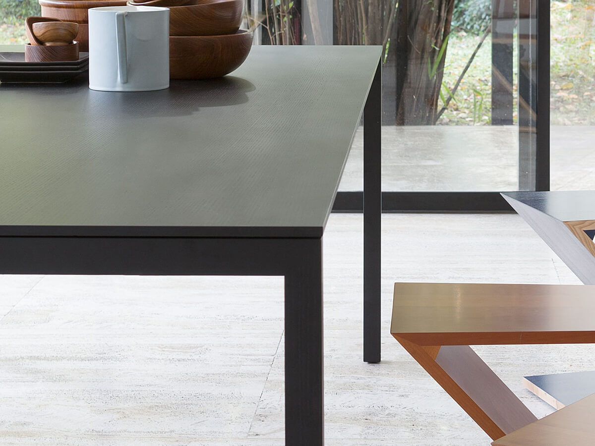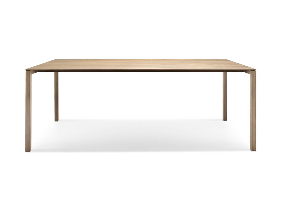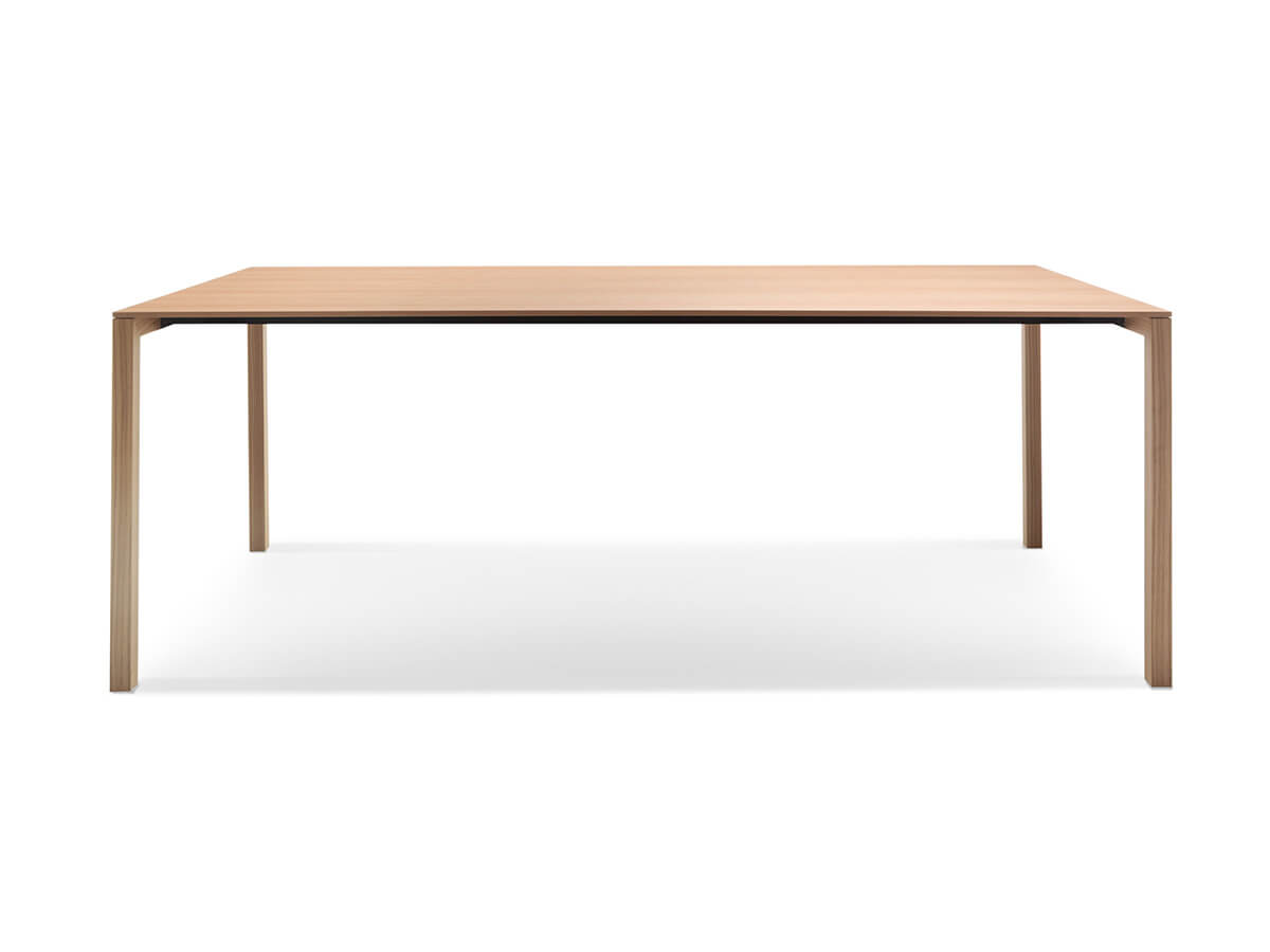 Piero Lissoni disegna il tavolo Naan sviluppando contemporaneamente due tendenze contrapposte basate su leggerezza visiva e solidità strutturale dell’oggetto. Lo spessore del piano rettangolare di soli 10 mm e realizzato in diverse finiture, ne accentua l’estremo rigore formale privo di sbavature e inutili frivolezze stilistiche. In questo modello è forte la tradizione artigianale e l’approccio industriale di Cassina, uniti nel conferire un pregio indiscutibile a quest’opera dove più che mai si percepisce l’accuratezza di ogni dettaglio. Inserito all’interno della collezione “I Contemporanei”, Naan si presta a molte interpretazioni d’arredo, ulteriormente arricchite dalla disponibilità di piani allungabili.