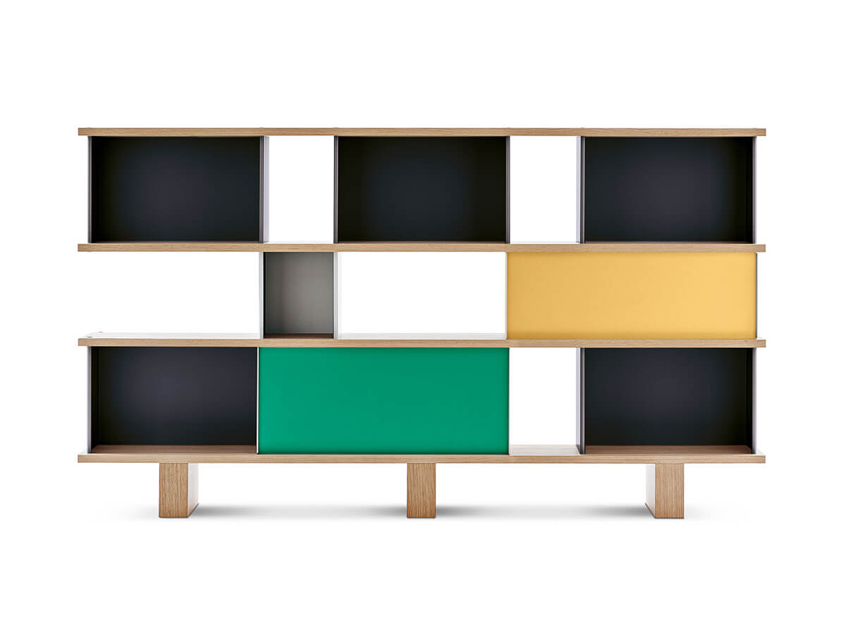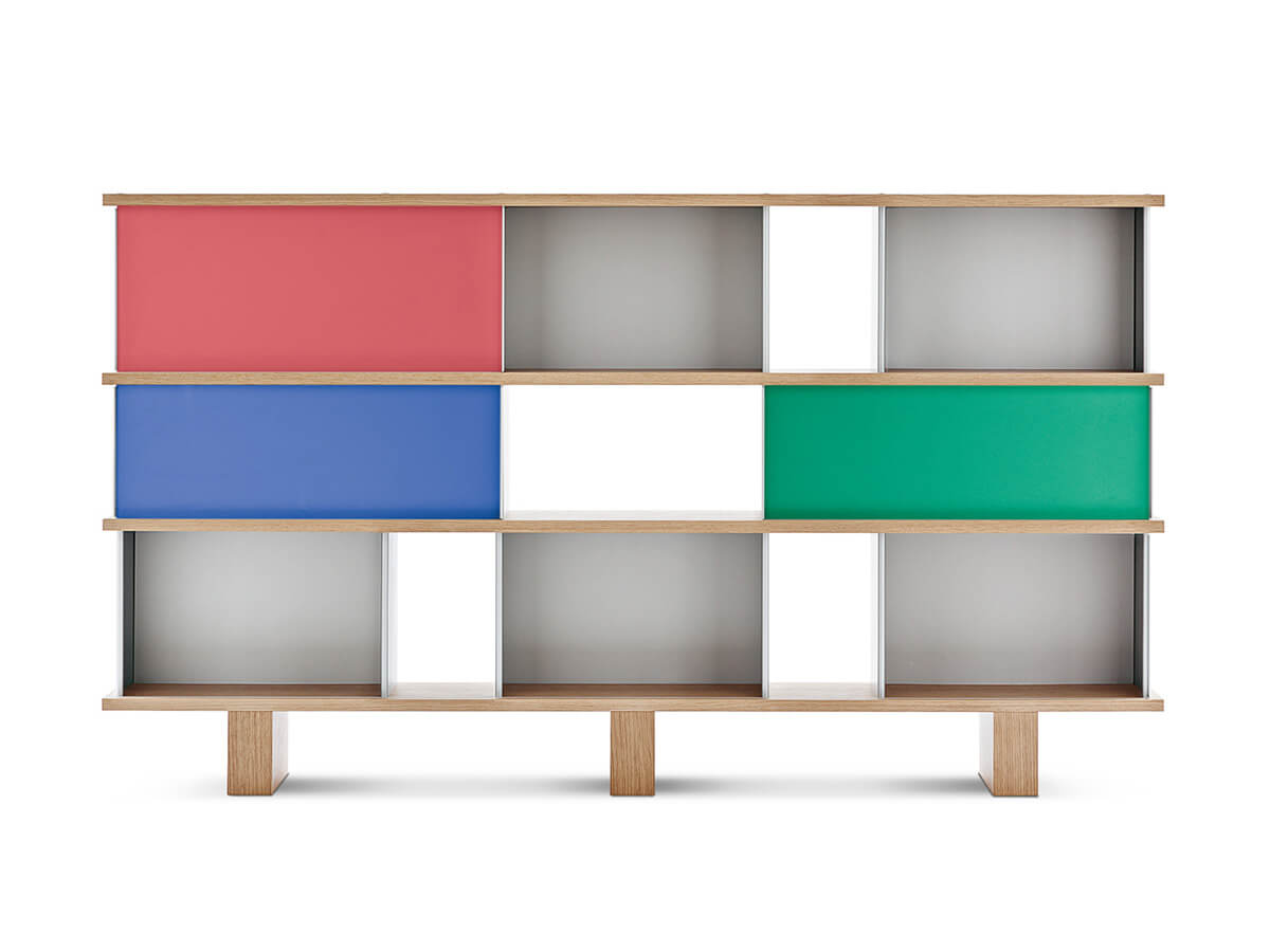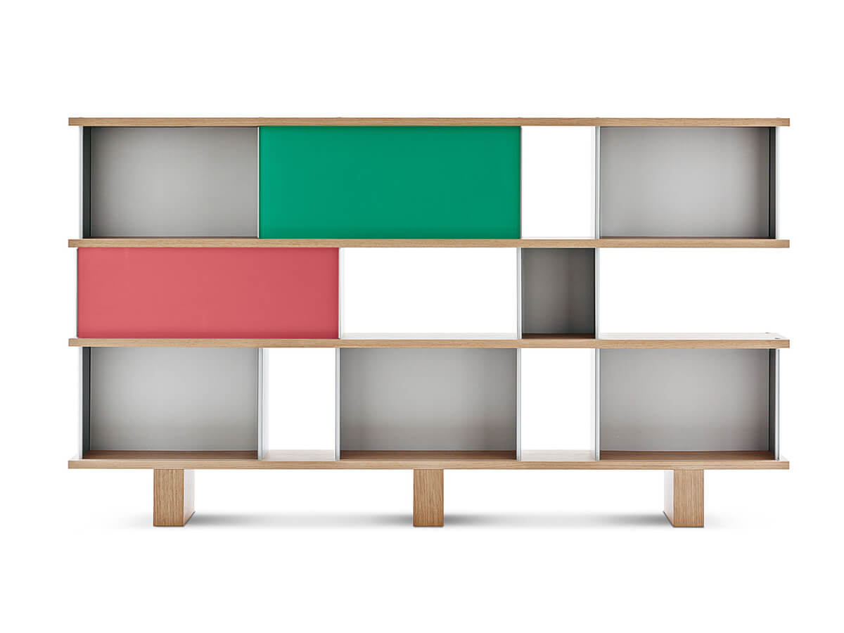 Disegnata da Charlotte Perriand nel 1940, la libreria Nuage rappresenta un vero e proprio tributo di autenticità e avanguardia, caratteristiche che le hanno valso a pieno titolo l’inserimento all’interno della Collezione I Maestri. Il progetto nasce dopo che la sua creatrice notò alcune mensole disposte secondo uno schema “a nuvola” sui muri del Palazzo Imperiale di Kyoto. Da questa ispirazione formulò un personalissimo concetto di modularità priva di schemi fissi ma decisamente più libera di spaziare secondo concetti di funzionalità, estetica e fruibilità dell’oggetto stesso all’interno della vita quotidiana. Il design asimmetrico di questo prodotto unito alla possibilità di combinare i diversi elementi fra di loro offrono la possibilità di modellare diversi ambienti e soluzioni estetiche che spaziano da credenze a contenitori, librerie e composizioni appese. Grande pregio rivestono anche le strutture autoportanti collocabili al centro della stanza come elementi non soltanto d’arredo ma di vero e proprio decoro strutturale. Caratteristiche tecniche: la versione Nuage à Plots non è dotata di ante scorrevoli
