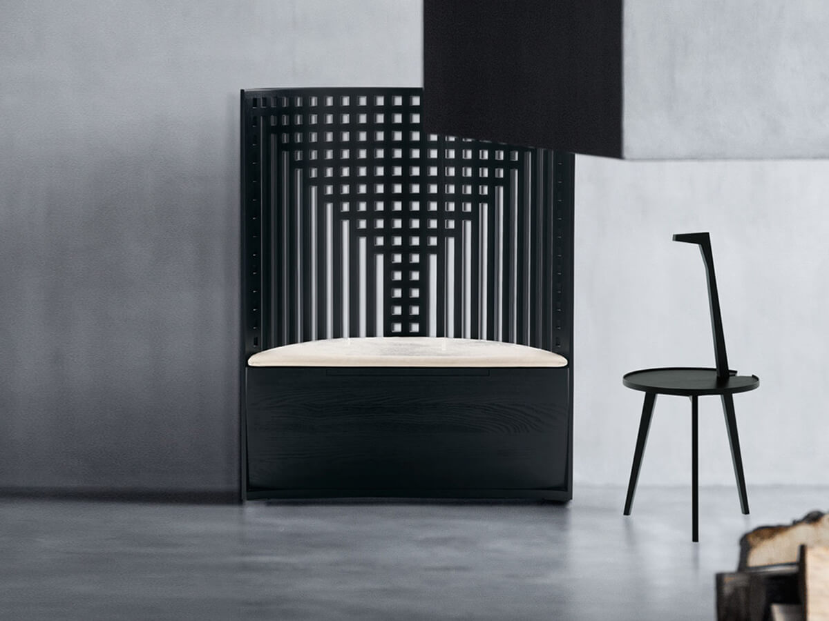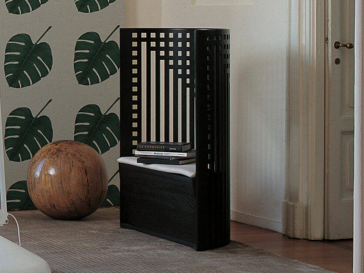 Una poltrona non convenzionale, capace di incuriosire con le sue forme non convenzionali e ricche di essenzialismo formale. Questa poltrona-tronetto nasce come riedizione del modello del 1904 che l’architetto Charles Rennie Mackintosh donò al locale “Willow Tea Room” di Glasgow. Pensato come un oggetto non solo d’utilizzo, ma anche funzionale, Willow presenta una spalliera alta e semicircolare la cui originaria funzione era di divisorio tra l’anticamera e la sala posteriore. Lo schienale avvolge il sedile secondo lo stile geometrico di Mackintosh. Per realizzare questa seduta, Cassina ha dato prova di padroneggiare alta ebanisteria, riconoscibile nella precisione artigianale con cui vengono assemblati i componenti per creare la struttura leggera ed estremamente raffinata.