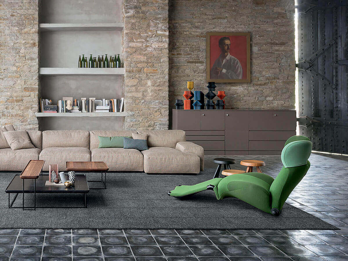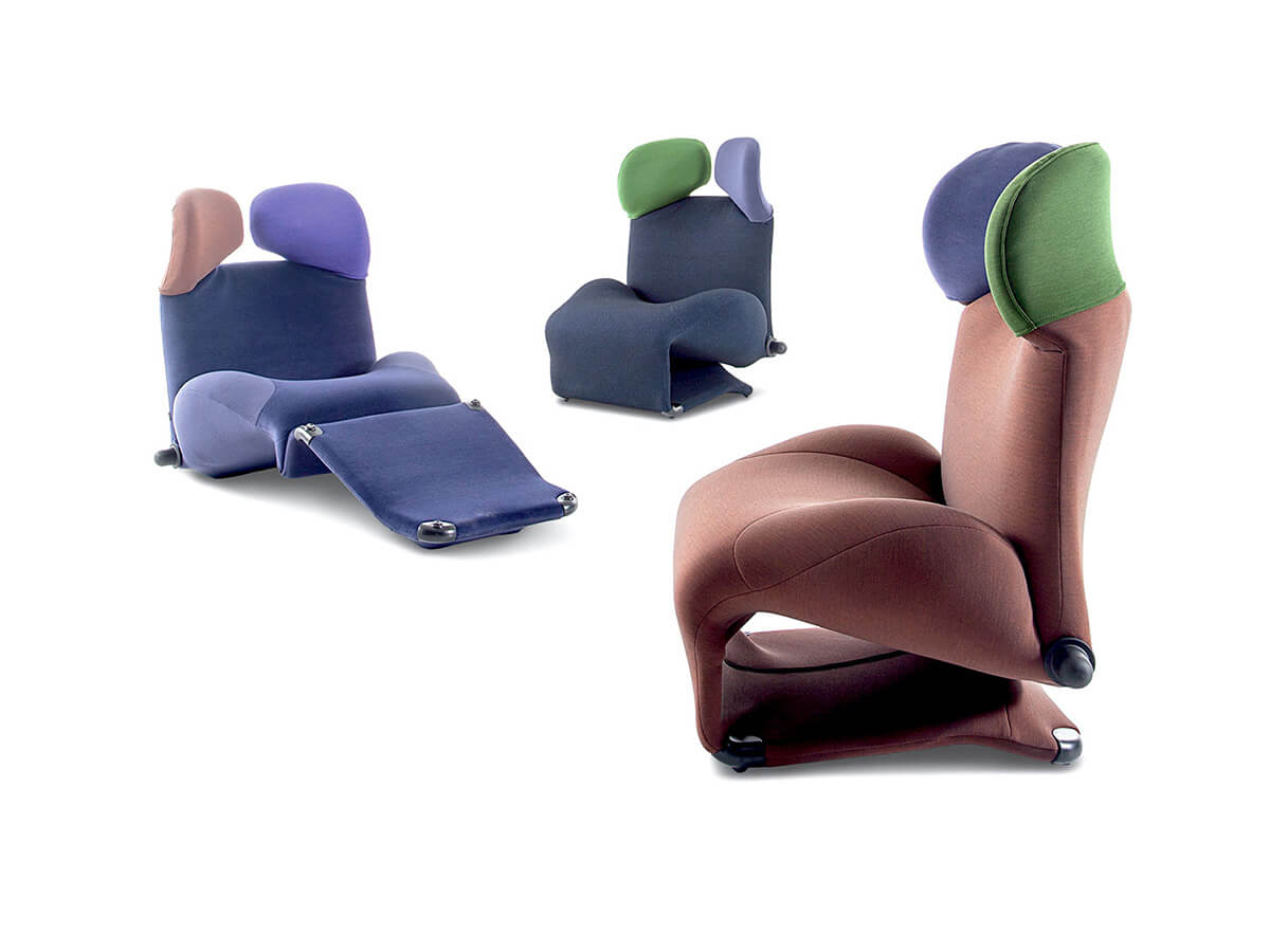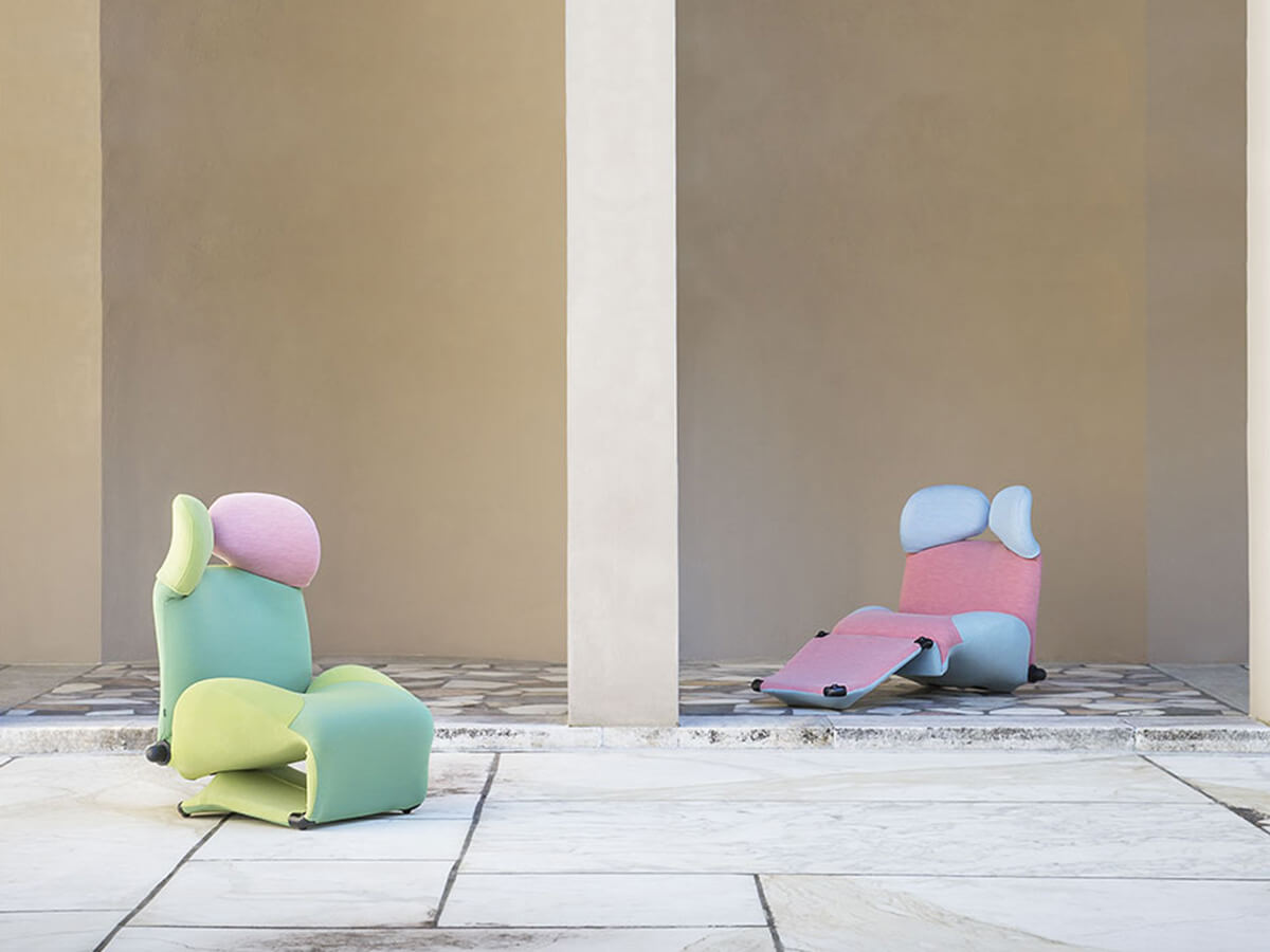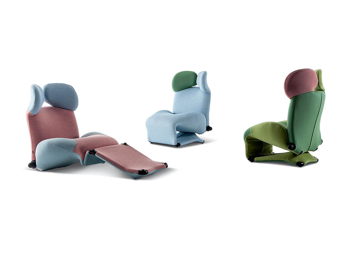 La poltrona Wink rappresenta uno dei più caratteristici prodotti di Cassina. Disegnata nel 1980 a opera del design Toshiyuki Kita, è ora inserita all’interno della Collezione I Contemporanei in quanto espressione di originalità, sperimentazione e voglia di osare. Un intreccio di ergonomia e flessibilità sagomano Wink, capace di trasformarsi da poltrona a chaise longue grazie alla struttura dotata di base ribaltabile. Citando le parole del suo disegnatore: “Su Wink ci si siede a terra e, secondo la tradizione orientale, quando un corpo è seduto a terra lo spirito si eleva”. Le proporzioni contemporanee, la cui anima multifunzionale non disdegna un tocco di ironia, sono completamente personalizzabili offrendo al cliente la possibilità di scegliere fra rivestimenti in pelle o un’ampia gamma di tessuti. La posizione dello schienale, completo di poggiatesta con sezioni reclinabili, è completamente regolabile grazie a manopole laterali.