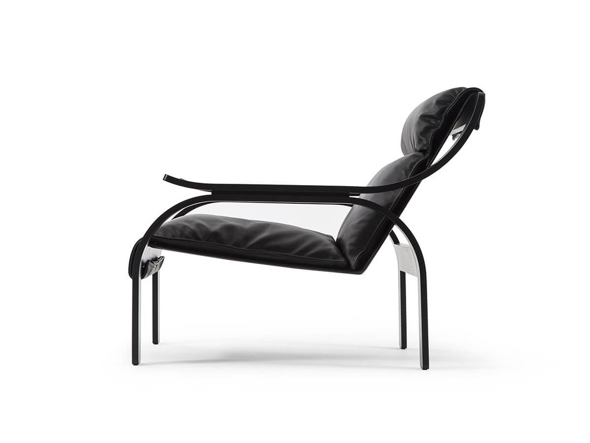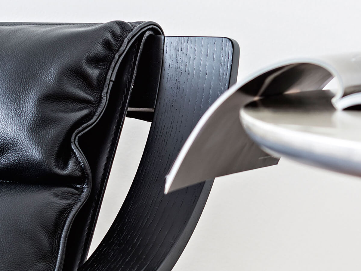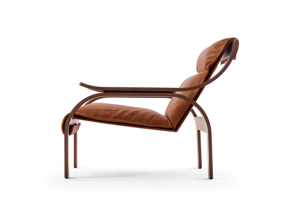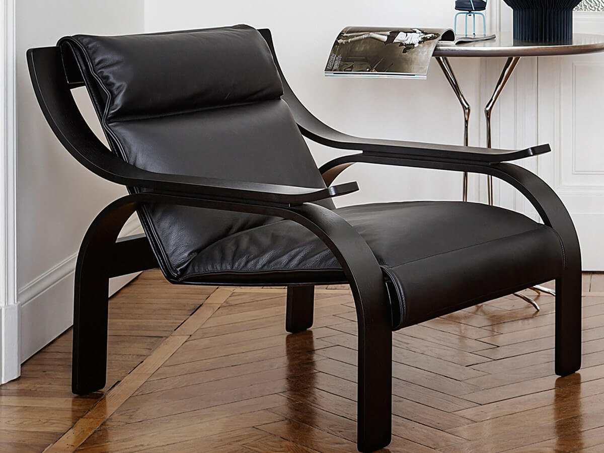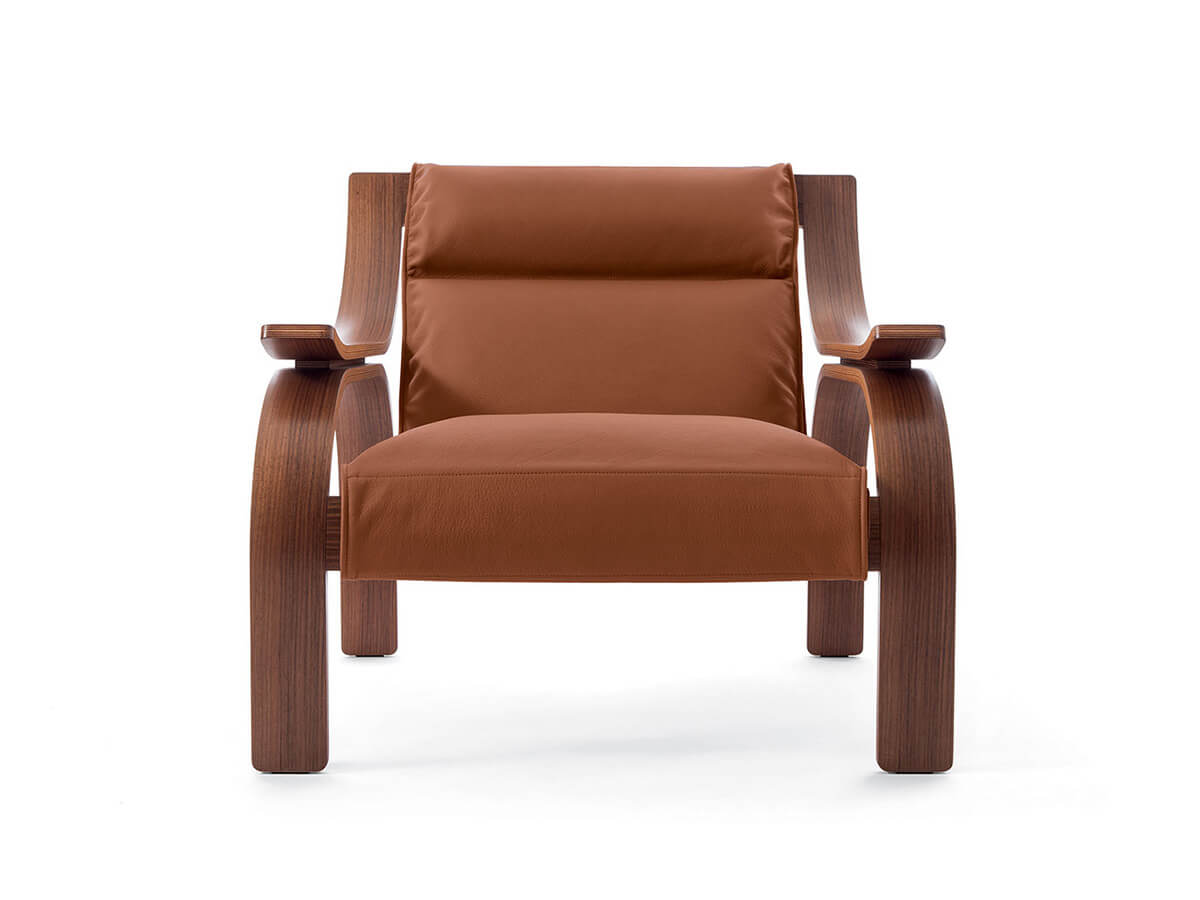 Progettata nel 1964 da Marco Zanuso, la poltrona Woodline presenta un design deciso e rigoroso, che non disdegna però una discreta morbidezza delle forme. Particolare fondamentale di Woodline è lo studio inizialmente compiuto nel 1949 da Zanuso per il concorso internazionale di design al MOMA di New York, e successivamente ripreso nel ’64 sfruttando la tecnologia di Arflex, che analizzava la possibilità di ancorare un elemento seduta a una struttura portante in legno. Struttura in legno curvato, pannello portante e cuscini sono i tre elementi distinti, ricchi ognuno di particolarità sufficienti a renderli a sé stanti. Lo scheletro in legno è progettato partendo da una matrice basata sulla geometria del cerchio, poi ripreso in molte particolarità di questa icona senza tempo.