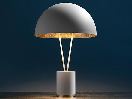 *Prezzo valido per la versione con base e cupola in metallo nero, interno cupola in foglia oro e dettagli in ottone - Led incluso (cod. ALEBIGB).