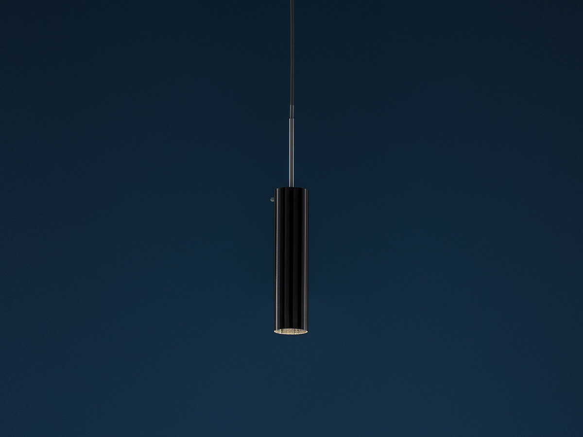 La lampada a sospensione Lucenera 504 ideata da Enzo Catellani per la Catellani & Smith risponde all’esigenza di valorizzare il soggetto illuminato attraverso la luce, mettendo apparentemente in secondo piano l’oggetto-lampada. Un semplice cilindro in carbonio nero o tecnofibra bianca, sospeso ad un cavo tagliabile a misura, diffonde una luce direzionale diretta, focalizzata ed orientata verso il basso. La fonte luminosa è data da una lampadina Led che produce una luce bianca calda adatta ad ambienti o negozi in cui si desideri un’atmosfera rilassata, ma in cui si deve anche lavorare e svolgere attività di routine.