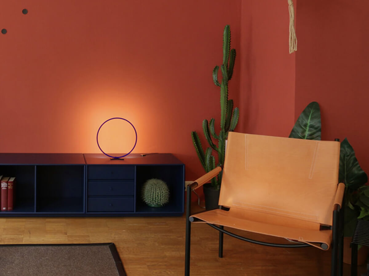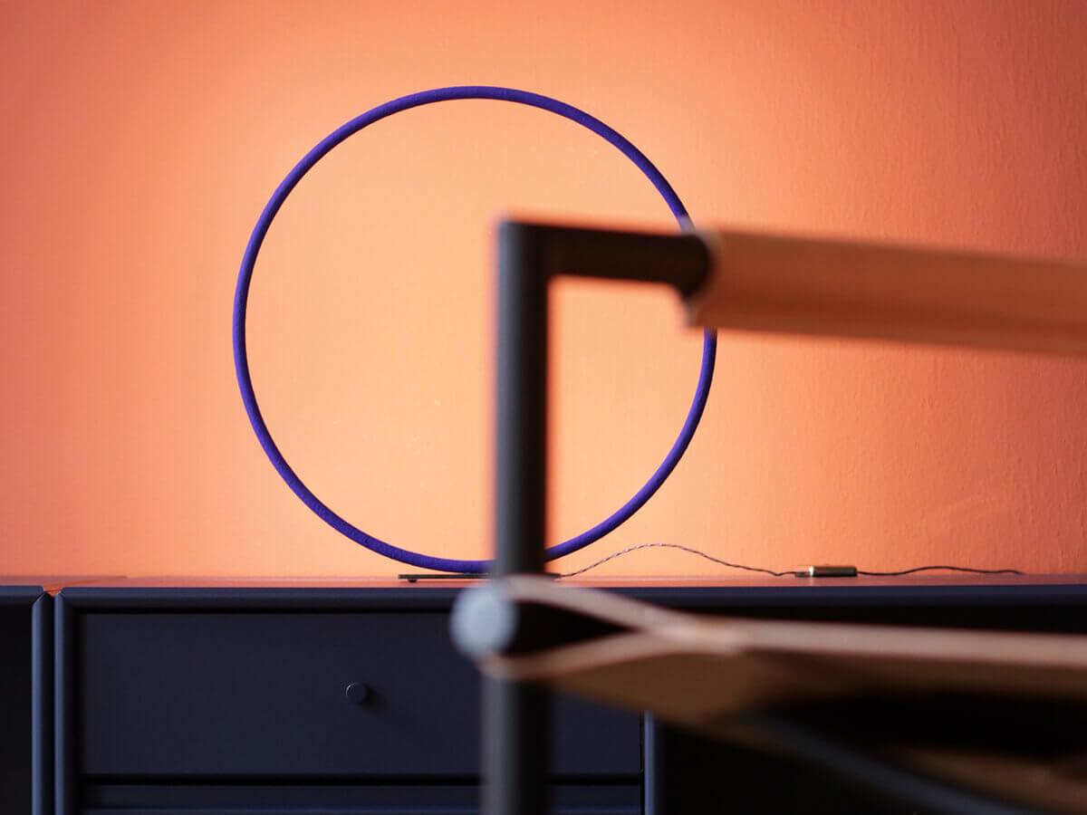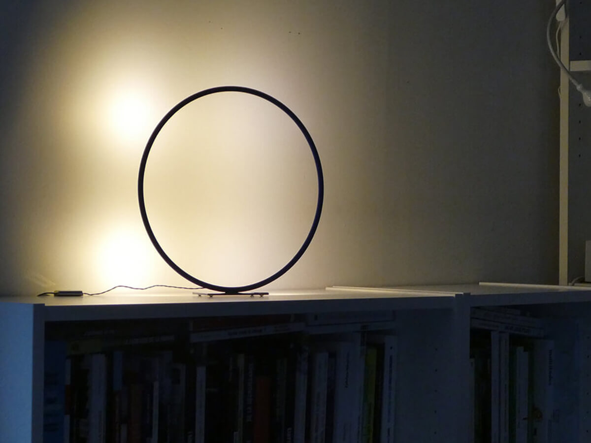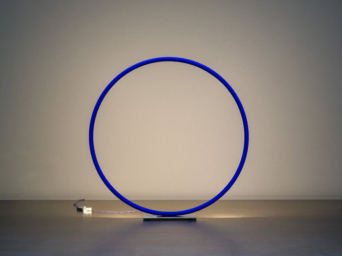La passione di Enzo Catellani per l’essenzialità delle linee e la forma perfetta del cerchio sono alla base della creazione di questa famiglia di lampade che, con rispettosa ironia, il designer denomina Sorry Giotto. La versione da tavolo di questa lampada, prodotta dal noto brand Catellani & Smith, è formata da una base in ferro grezzo e da un anello in rame dipinto a mano di blu. La fonte luminosa è montata sul retro del cerchio e produce una luce dalla tonalità calda. Sorry Giotto 1 è una lampada dalla bellezza semplice apprezzata in particolar modo da chi ama uno stile minimalista.