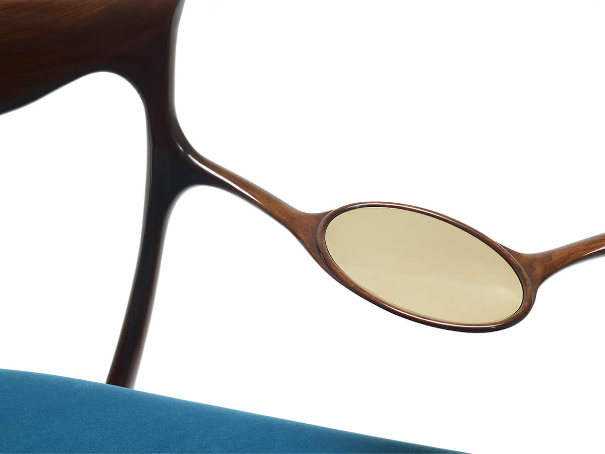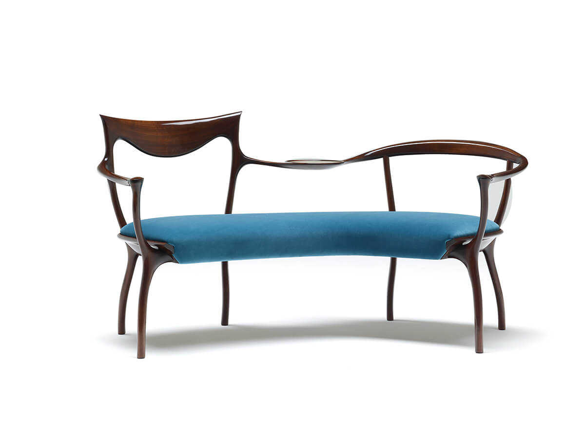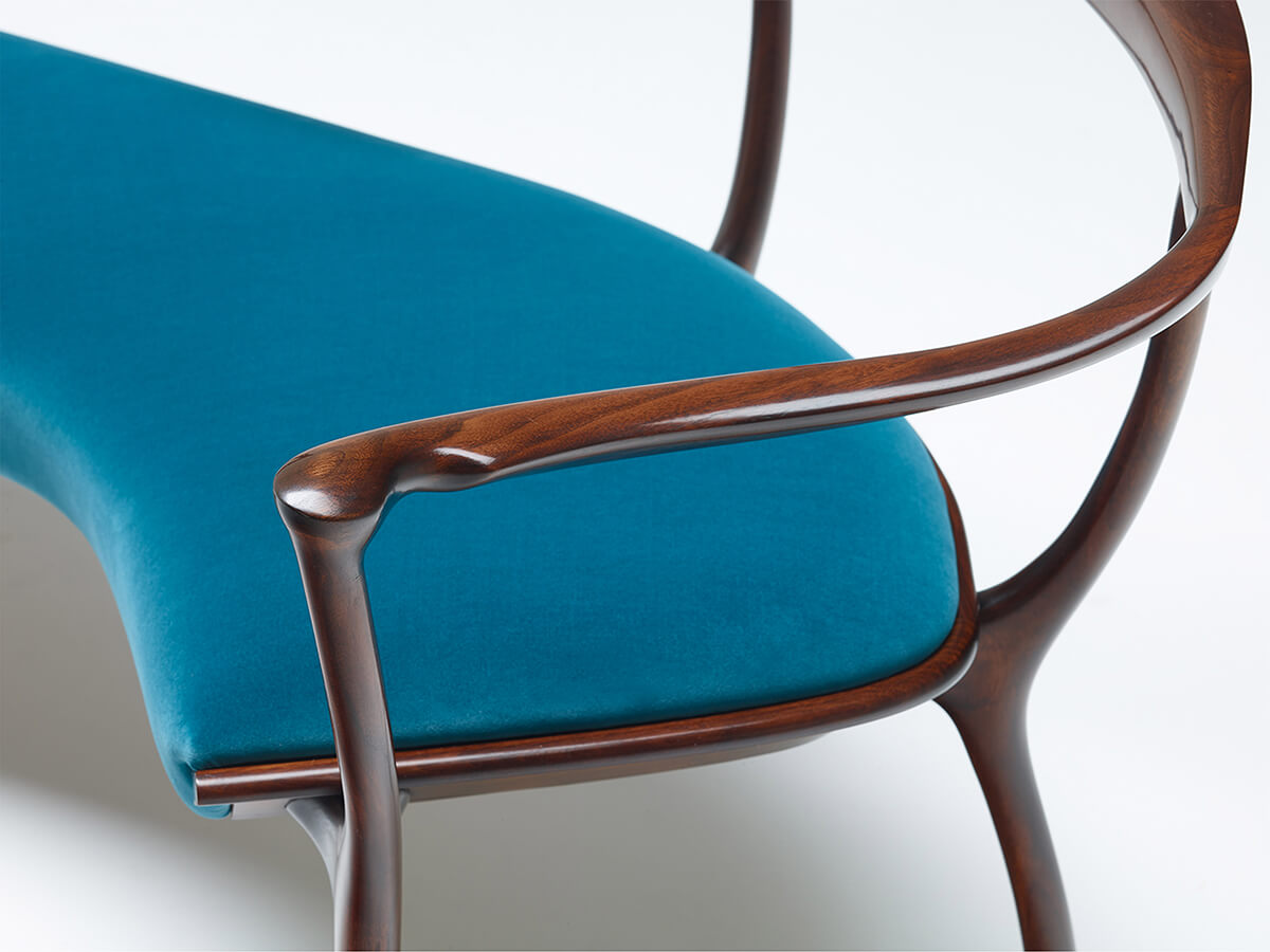 Un elemento d’arredo fortemente connotato, capace di riassumere eleganza e semplicità in forme che molto hanno a che spartire con l’arte della calligrafia. D.R.D.P. è un divanetto in massello di noce americano finemente modellato con tecniche artigianali volte a esaltare venature e pregevolezza del legno. La seduta è in multistrato, imbottita e provvista di un vassoio in vetro sabbiato con finitura argento. Ideale per chi desideri un elemento d’arredo classico eppure al passo con i tempi, che bene sappia incarnare un desiderio di estemporaneità da mode e tendenze. DRDP è disponibile in diverse misure e finiture fra cui noce americano, noce americano scuro, moda e brown.