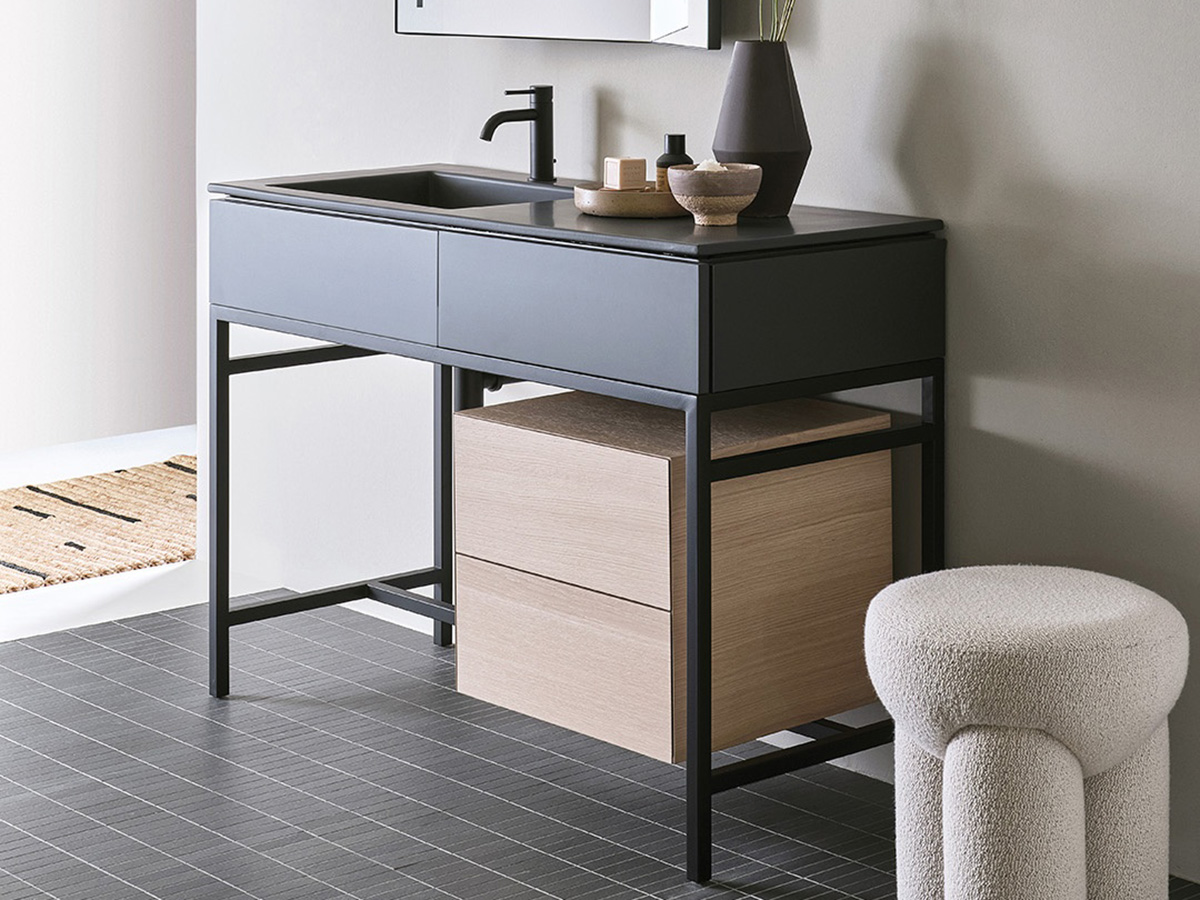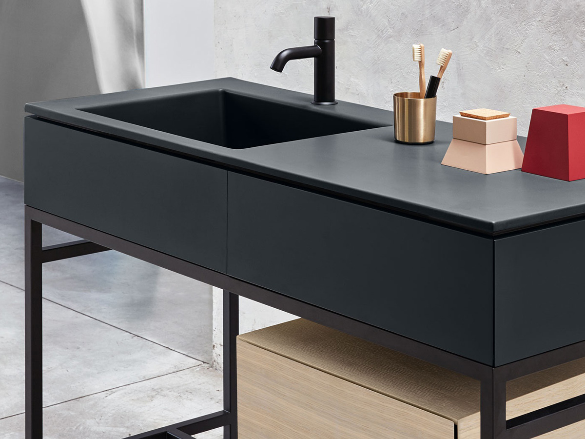 Dalla produzione artigianale e dal segno stilistico di Ceramica Cielo nasce Milano, una collezione di lavabo, mobile e specchio capace di riassumere un amore per la modernità e per il gusto contemporaneo. Milano si compone di un grande bacino e un comodo piano d’appoggio disponibili in diverse finiture della gamma Terre di Cielo con integrato un cassetto contenitore. La struttura del mobile è in acciaio verniciato e può essere completata da una cassettiera in essenza o laccata. Nell’insieme Milano si presta a diversi stili e gusti che tuttavia ben si prestano a prediligere mode e tendenze attuali, nonché una preziosa cura di ogni dettaglio.