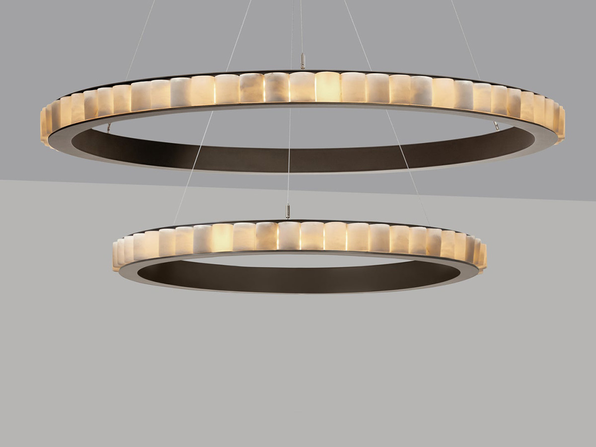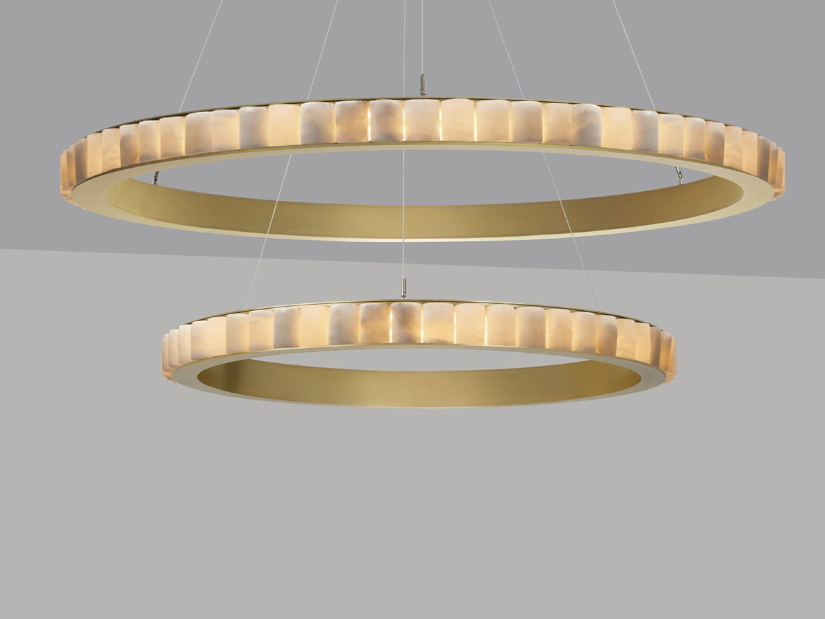 *Prezzo valido per la versione Halo con n.01 cerchio in Ø 101 cm e n.01 cerchio in Ø 64 cm in finitura ottone satinato e alabastro - Led integrato (cod. AVACHOSBHA-CM).