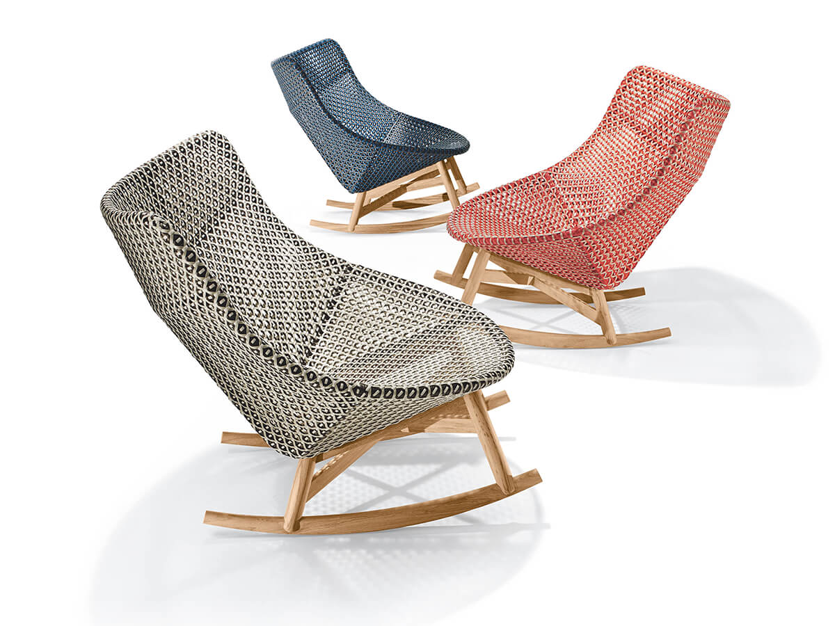*Prezzo valido per la versione a dondolo con base in teak – struttura in fibra – cuscino poggiatesta e cuscino seduta rivestiti in tessuto cat. A (cod. AYK).