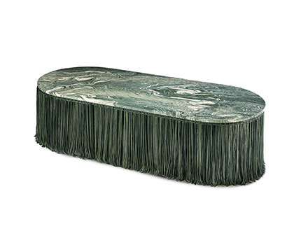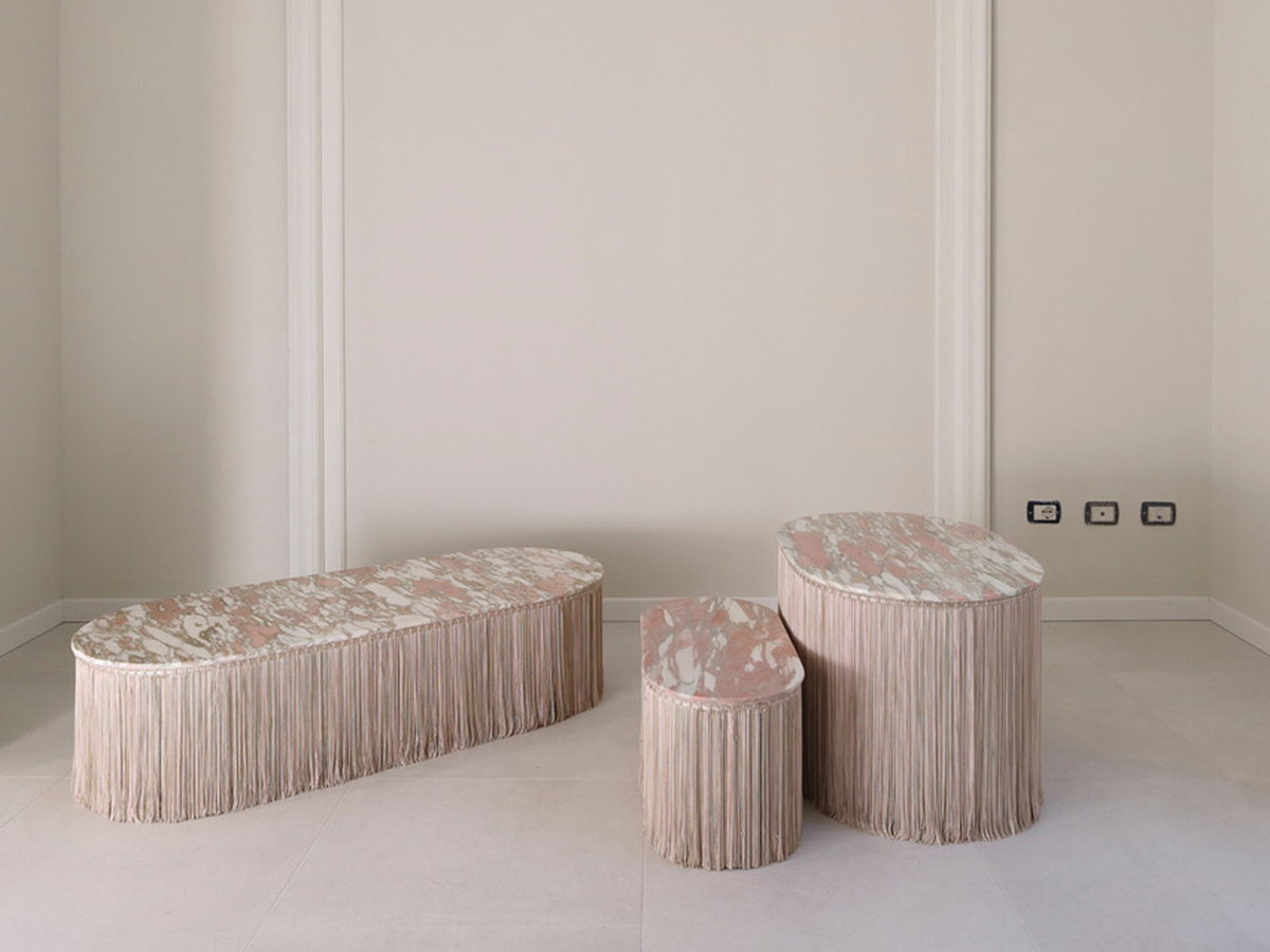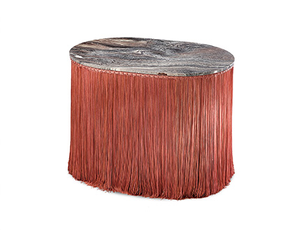 Tripolino è un pouf inusuale, pensato e disegnato da Cristina Celestino per essere collocato in contesti differenti, più o meno formali, dove si senta necessità di inserire un elemento fuori dagli schemi. Tripolino nasce dall’unione di marmo e frange in passamaneria, un duo che vuole rievocare il gusto dei salotti borghesi aggiungendovi però un tocco di personalità che rende l’intero pezzo esotico e caratteristico insieme. Editions Milano mette a disposizione questo oggetto in diverse colorazioni per meglio adattarsi a contesti d’arredo differenti.