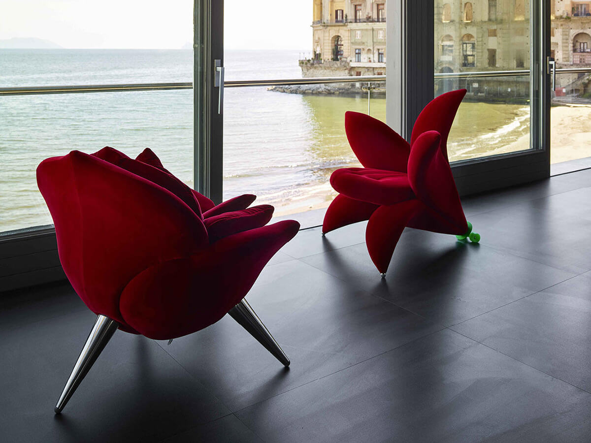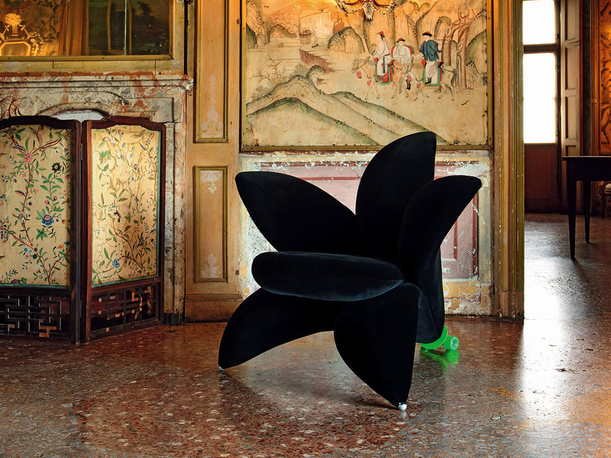 Masanori Umeda traduce in arredo una passione millenaria per le belle arti, i fiori e l’estetica nel suo complesso, creando una seduta difficilmente riducibile a una semplice poltrona. Getsuen richiama nella struttura la forma di un giglio, replicata poi nella scelta di finiture altrettanto delicate che nascondono in sé una solida struttura d’acciaio modellata manualmente. La tecnologia di Edra concorre qui nel creare un oggetto unico nel suo genere, che grazie alla sua particolarità riesce a trovare posto in qualunque ambiente della casa oltre che ampie zone contract. La bellezza di Getsuen nasce anche dal suo stile estemporaneo, antico e nuovo allo stesso tempo e in ogni caso capace di stupire.