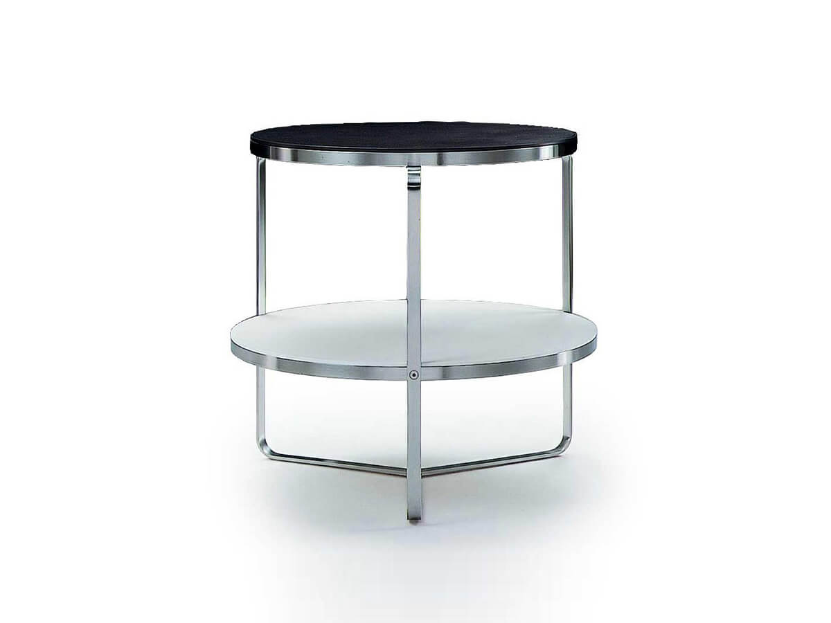 Carlotta nasce da un disegno di fine bellezza estetica, la cui matrice progettuale si ispira alla celebre corrente Bauhaus di cui trae l’essenza e compattezza formale. La struttura in metallo di Carlotta spicca per le finiture cromate, satinate, brunite e champagne, oltre che per le viti in evidenza nei punti di giuntura volte a rimarcare il disegno rigoroso ed essenziale del tavolino. I due diversi piani d’appoggio presenti nella versione tonda creano un doppio movimento globale. Nella versione quadrata se ne trova uno soltanto, non meno pregiato nelle diverse finiture noce, frassino e altro ancora messi a disposizione dall’azienda Flexform.