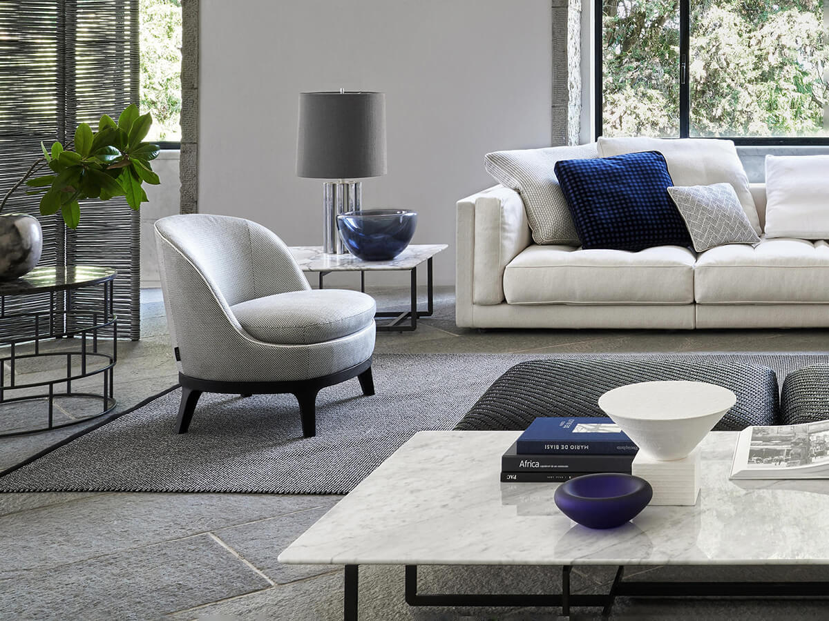 Nata nel 1959 nel cuore del distretto della Brianza del mobile, Flexform è un’azienda che ha esportato lo stile e il gusto italiano del comfort in tutto il mondo. Fondata dai fratelli Galimberti come piccolo laboratorio artigiano per la produzione di imbottiti, l’azienda ha fin da allora come obiettivo principale la ricerca di un’eleganza senza tempo, aliena alle mode passeggere, e di una comodità assoluta.