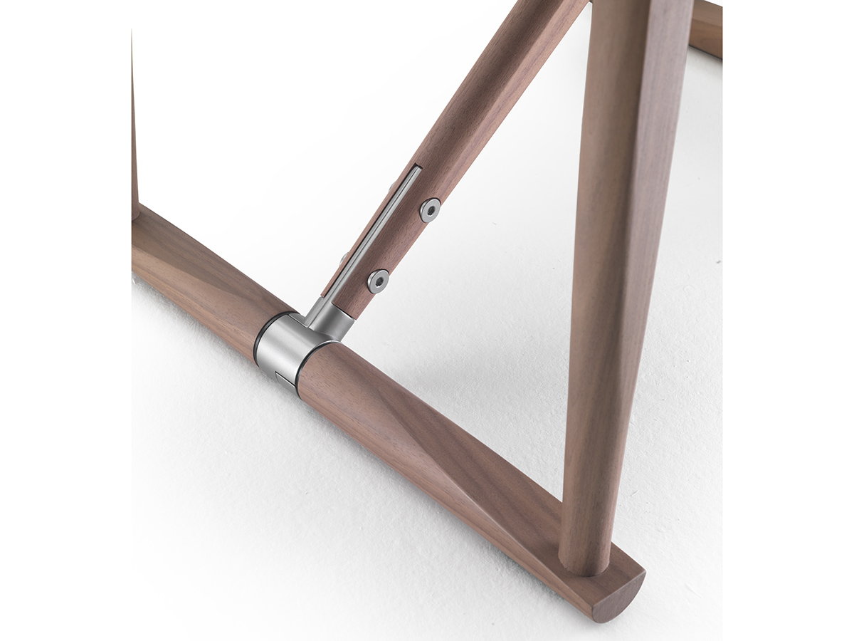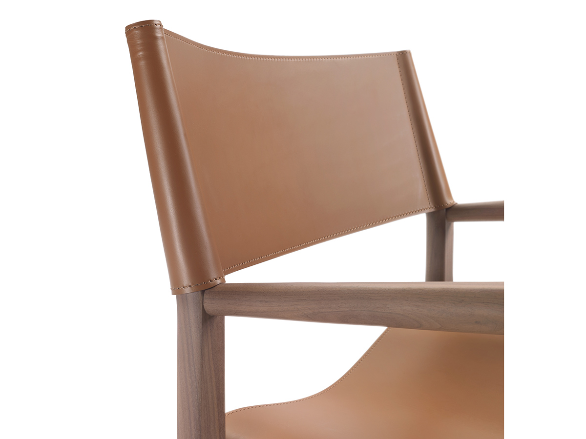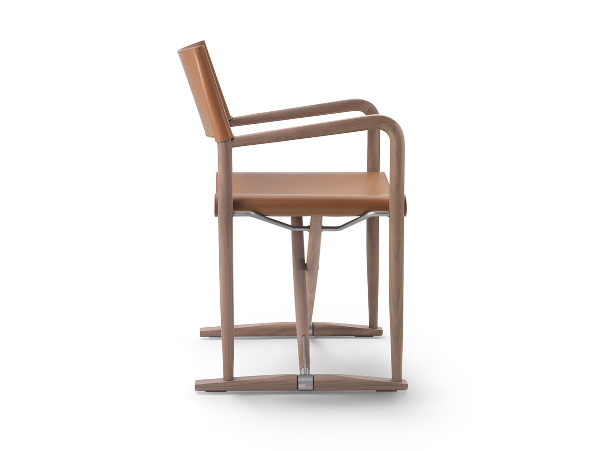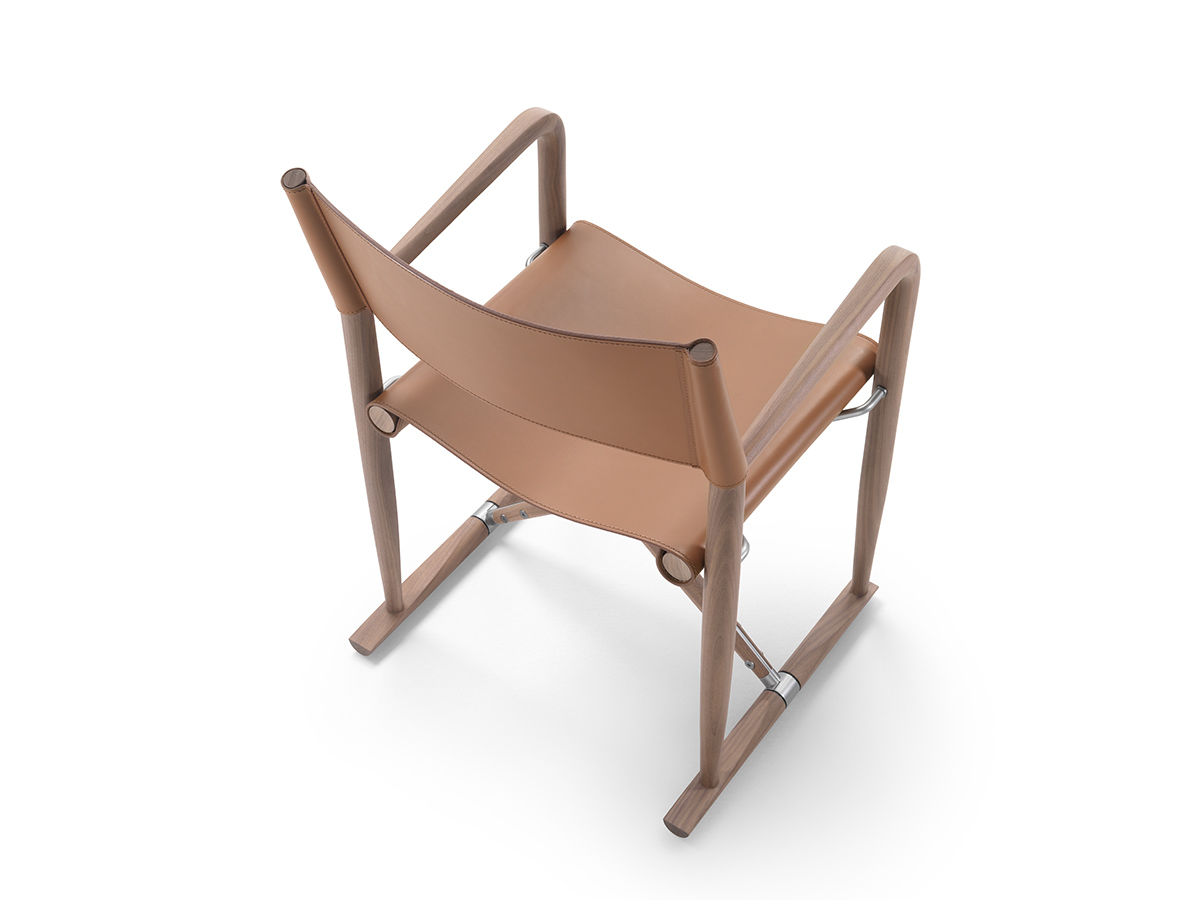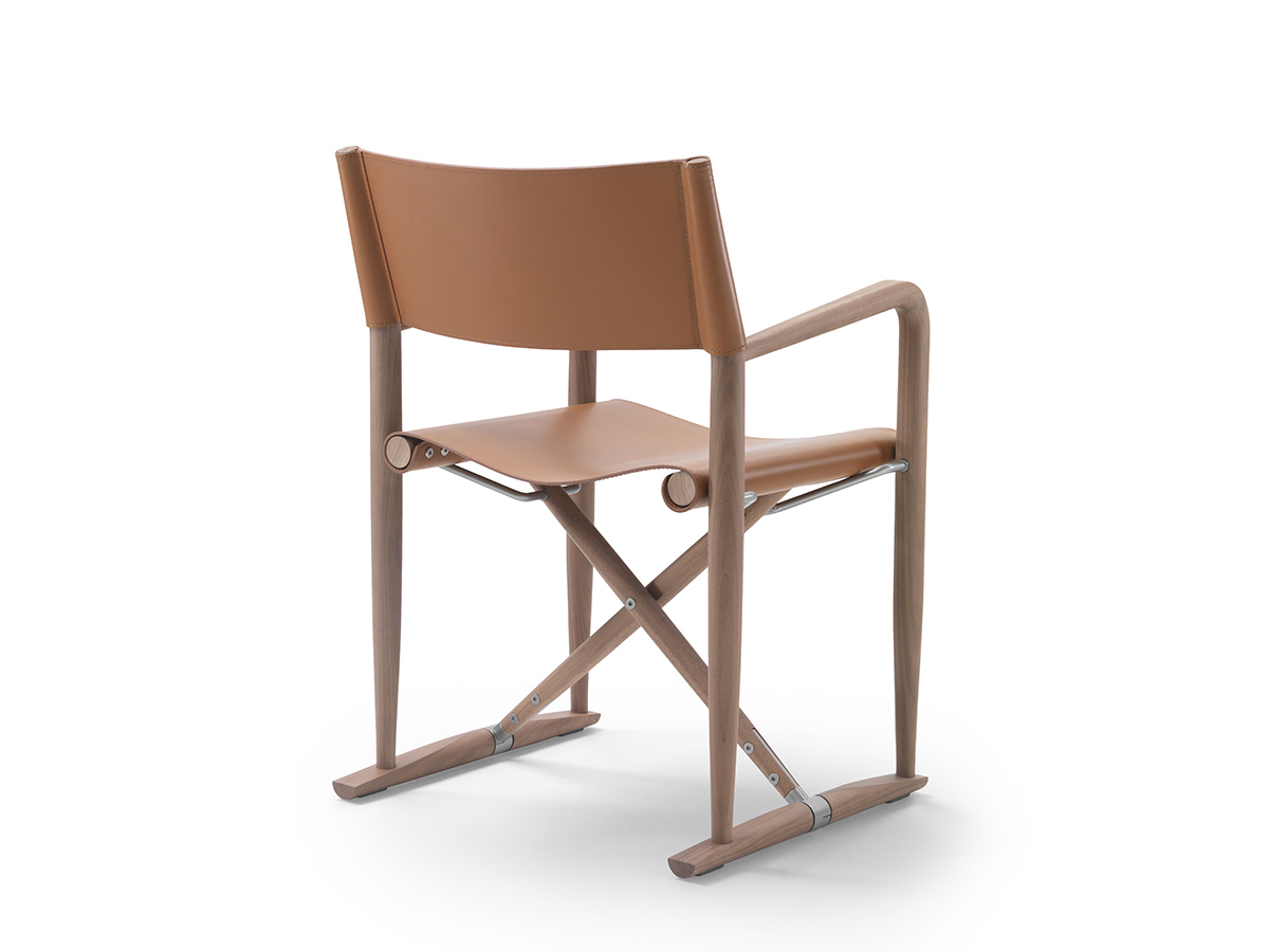 Luchino è una sedia dal design fortemente caratterizzato, le cui linee prendono vita dalla penna di Antonio Citterio per giungere a noi con una sembianza nuova, frizzante ed emozionante. La funzionalità di Luchino si deve alla possibilità di ripiegare l’intera struttura così da meglio poterla trasportare. Luchino viene realizzata in legno massello tornito e rifinito a mano, con una seduta e lo schienale in cuoio. Gli snodi sono ricercati e preziosi, resistenti all’uso prolungato. La fisicità di Luchino sembra prendere forma dal vivere moderno, spesso dominato da esigenze di spostamento o contemporaneità di più azioni. Con lo stesso input energico, Luchino si presta esattamente a questo impiego, trovando spazio in situazioni diversificate.