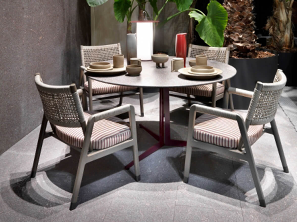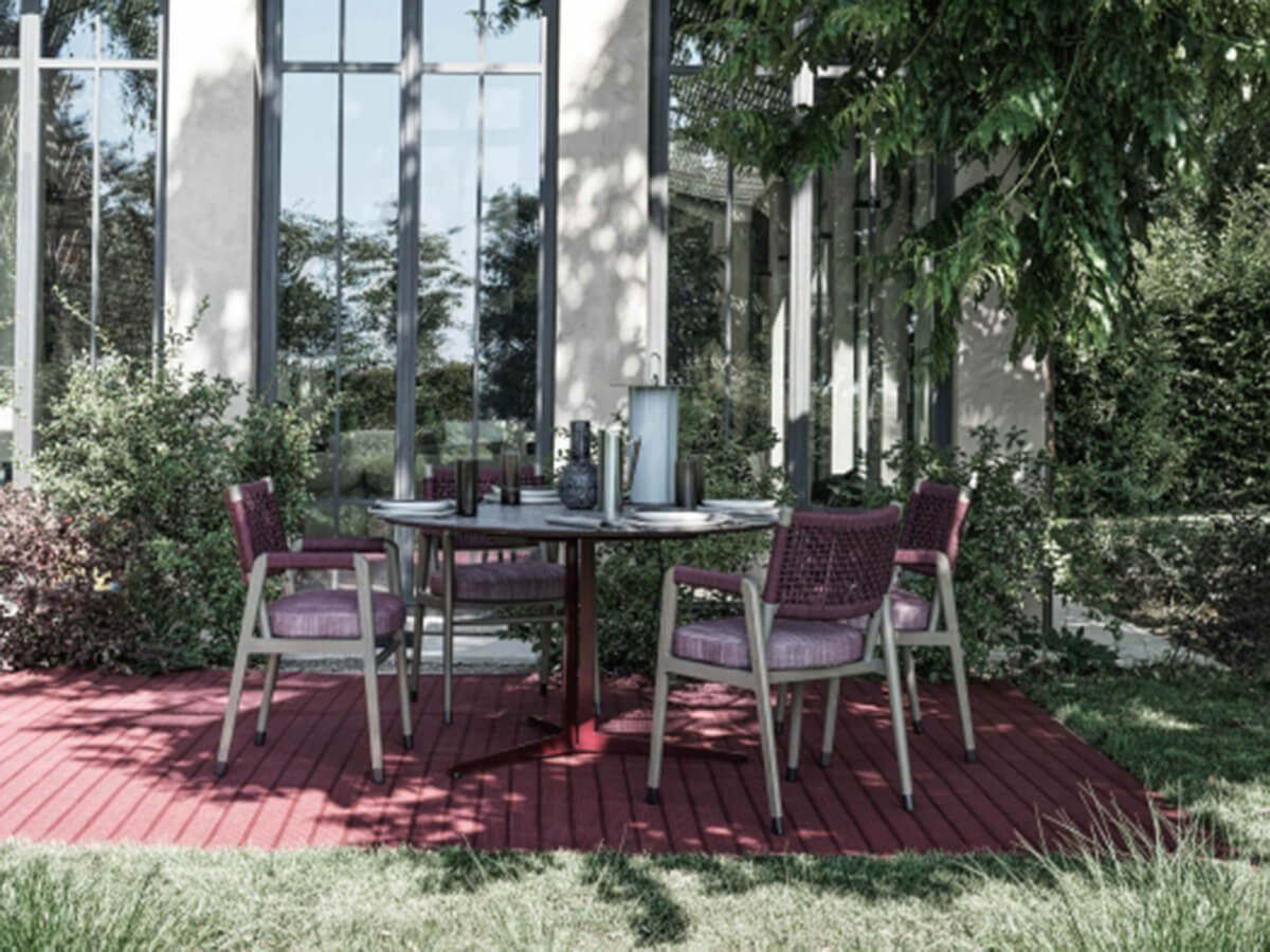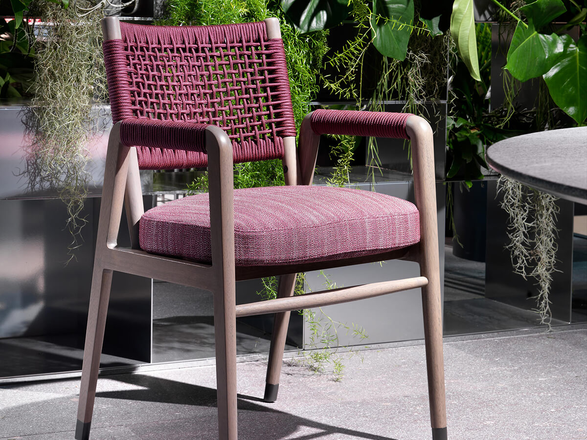 Dall’omonima famiglia di sedute per interni nasce Ortigia Outdoor, una sedia dal particolare fascino classico-borghese riletto in chiave contemporanea per meglio accostarsi ai gusti e stili del nostro tempo. La struttura di Ortigia è interamente realizzata in massello di iroko, materiale resistete all’utilizzo nonché all’erosione degli agenti atmosferici. La lavorazione operata da Flexform segue la tradizione ebanista per una resa di particolare bellezza. L’appoggio a terra è a mezzo di puntali in lega metallica pressofusa fresata cui si aggiungo gommini in nylon. La seduta è imbottita e lo schienale impreziosito da un sofisticato intreccio realizzato interamente a mano e liberamente personalizzabile a seconda del gusto.