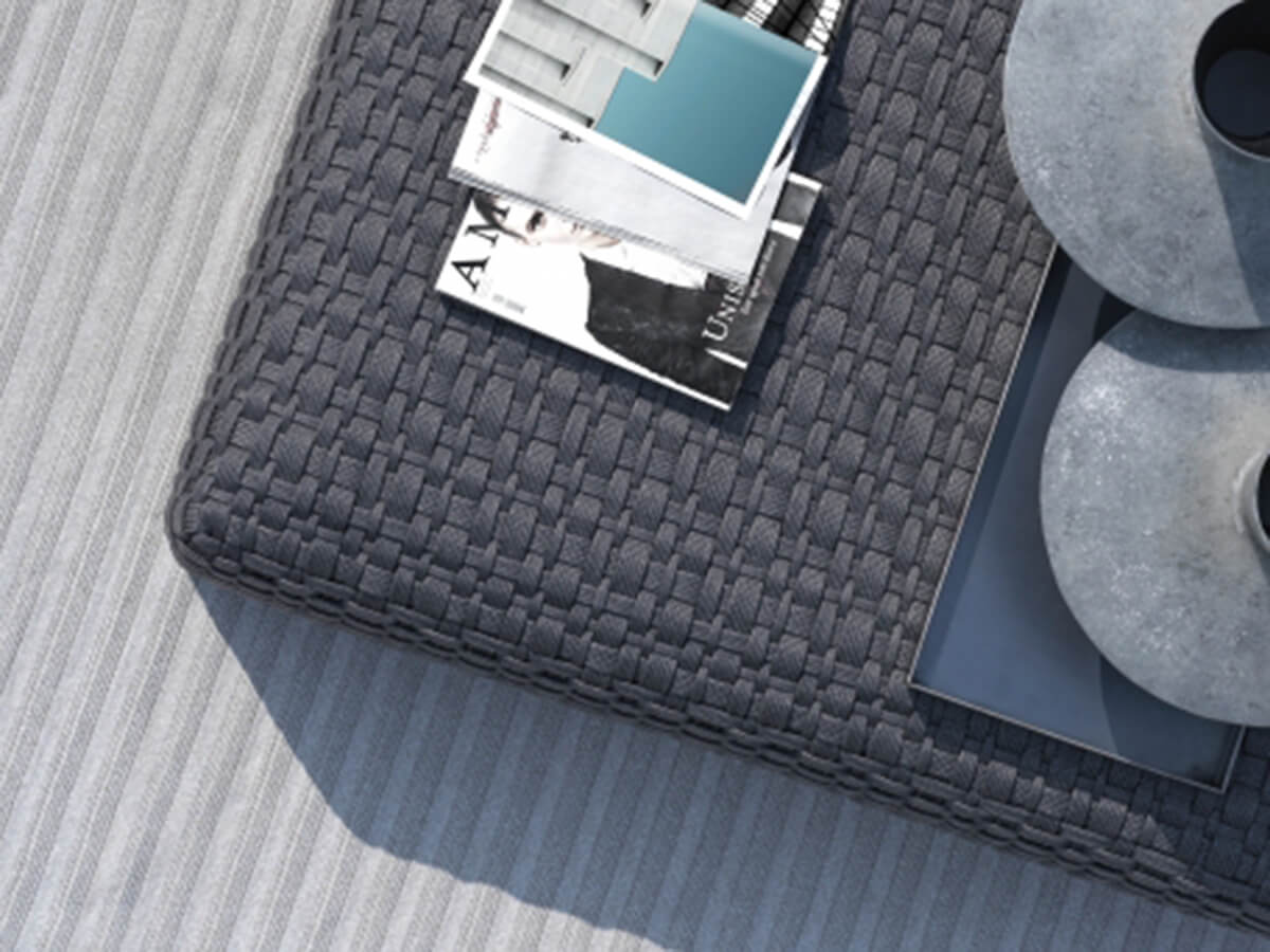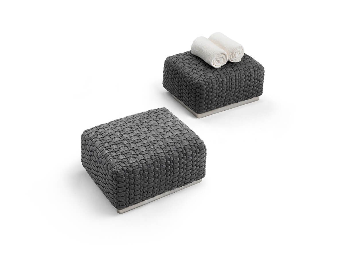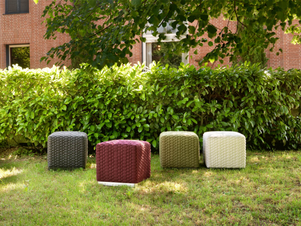 Un elemento ideale per trascorrere rilassanti momenti all’aperto, cullati dai migliori comfort e un design d’arredo d’alta gamma. Phuket è un pouf funzionale quanto essenziale, le cui forme particolarmente semplici rappresentano un cubo rivestito in fibra di polipropilene intrecciata in una gamma di colori che spazia dai toni naturali al bordeaux, al verde oliva e molto altro. Data la sua fisionomia, si presta a molteplici utilizzi, fungendo tanto da piano d’appoggio quanto da poggiapiedi e molto altro ancora. Ideale accanto alle numerose altre proposte Flexform, Phuket trova posto in un arredo raffinato che non trascura tuttavia una nota di semplicità.