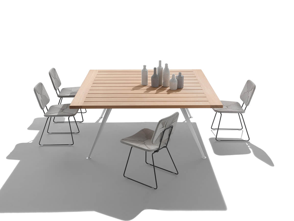 Il designer Antonio Citterio firma per Flexform la versione outdoor del tavolo Zefiro, utilizzando materiali pregiati per i piani, disponibili in numerose misure e finiture. Le gambe, in alluminio pressofuso verniciate a polvere epossidica in colori di tendenza, sostengono i piani in raffinate varietà di pietra per esterni: dalla Beola argentata alla pietra del Cardoso, dalla pietra lavica al porfido per soddisfare tutte le esigenze. Per alcuni articoli è previsto il piano in legno massello di iroko con diverse finiture. Per mantenere nel tempo la bellezza di questo tavolo da esterno è consigliato l’utilizzo di una cover impermeabile, acquistabile a parte.