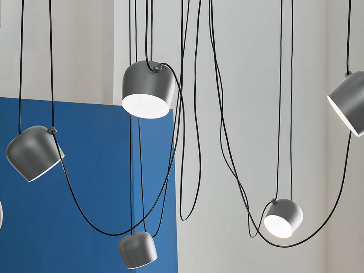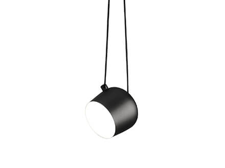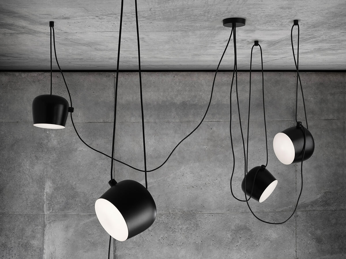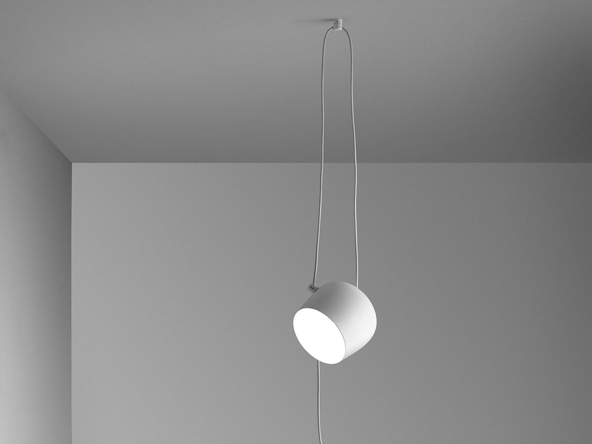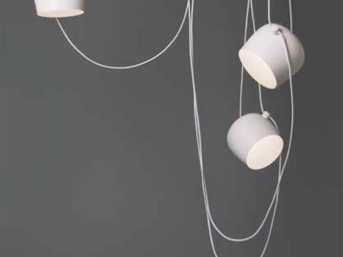 Una lampada a sospensione dall’animo creativo, dove l’estetica si unisce all’improvvisazione. Il corpo in alluminio tornito in lastra è verniciato a liquido, mentre il diffusore è in policarbonato ottico fotoinciso. Il corpo è orientabile grazie al sostegno di cavi che si intrecciano gli uni agli altri dando vita a composizioni estremamente poliedriche. Aim aspira proprio a realizzare arredi non convenzionali, capaci di stupire e attirare l’occhio verso scelte di sfumatura uniche. Ideale in ambienti living e più conviviali, questa lampada vive ancor meglio in gruppo e in spazi comuni, dove è più possibile dar sfogo alle sue possibilità strutturali.