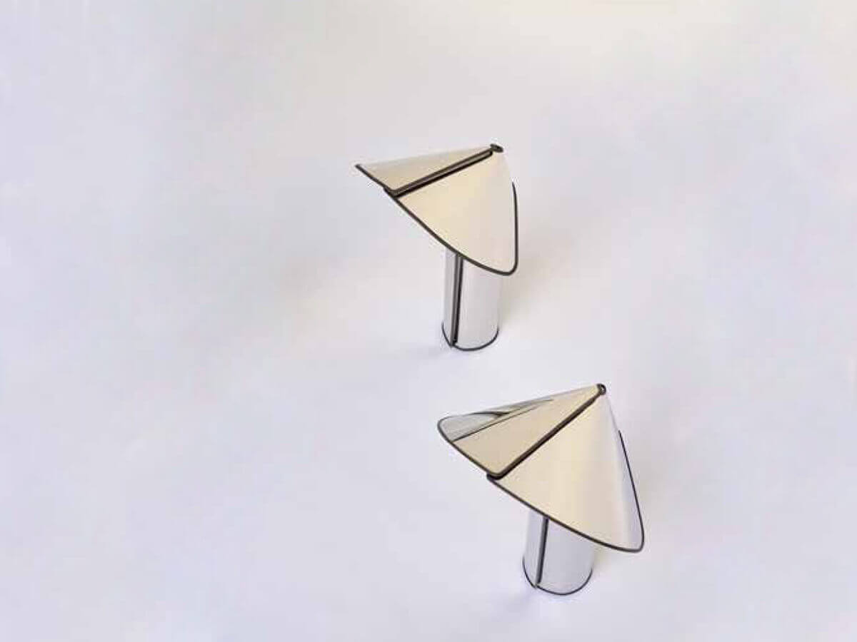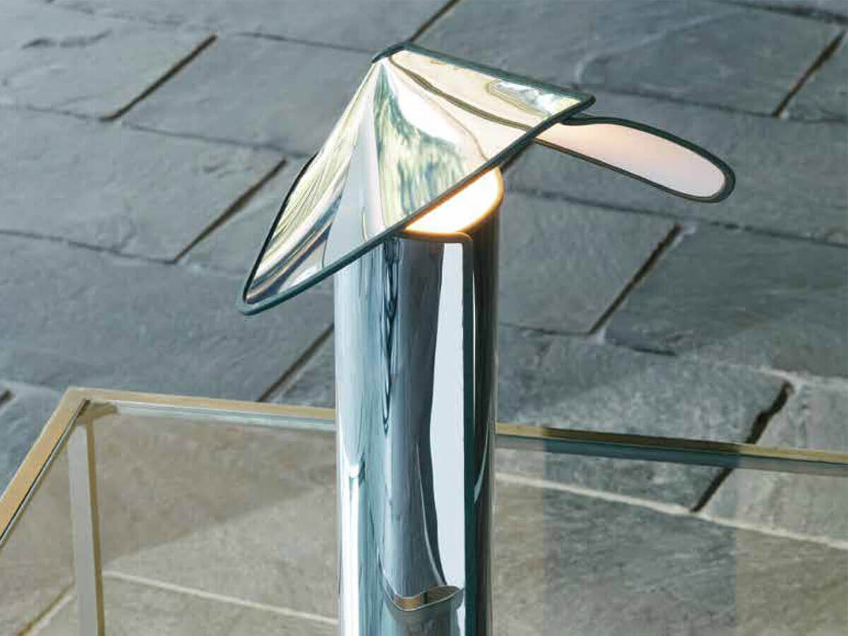 La peculiare forza immaginativa di Flos si declina qui in un elemento d’arredo a cavallo fra arte, architettura e design. Chiara è una lampada da tavolo composta da un corpo riflettore in alluminio in diverse varianti, rivestito internamente da una pellicola in materiale plastico, piegato e chiuso tramite agganci in acciaio inox. La base interna in alluminio estruso conferisce stabilità al corpo fissato su di essa. La bellezza di Chiara consiste proprio nelle sue forme stravaganti a cavallo fra ventagli, foglie di palma e altro ancora. Adatta a diversi ambienti della casa, spicca per la grazia delle forme unite al pregio delle finiture.