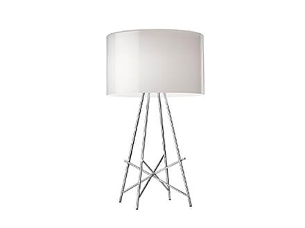 Un elemento d’arredo a metà fra architettura e design, capace di ricordare con le sue forme sintetiche ed essenziali le grandi strutture dell’edilizia. La struttura di supporto è in tubolare d’acciaio, spazzolato e cromato. Il disco di supporto del diffusore è in lega di Zama pressofusa lucidata e cromata. Il diffusore in alluminio è verniciato all’interno di colore bianco, ed esternamente in numerose proposte volte a soddisfare gusti ed esigenze eterogenei. La bellezza di Ray sussiste proprio nell’associare volumi fra loro diversi, accostati con armonia e cura delle proporzioni. Disponibile in diverse misurazioni per adattarsi a diversi ambienti della casa.