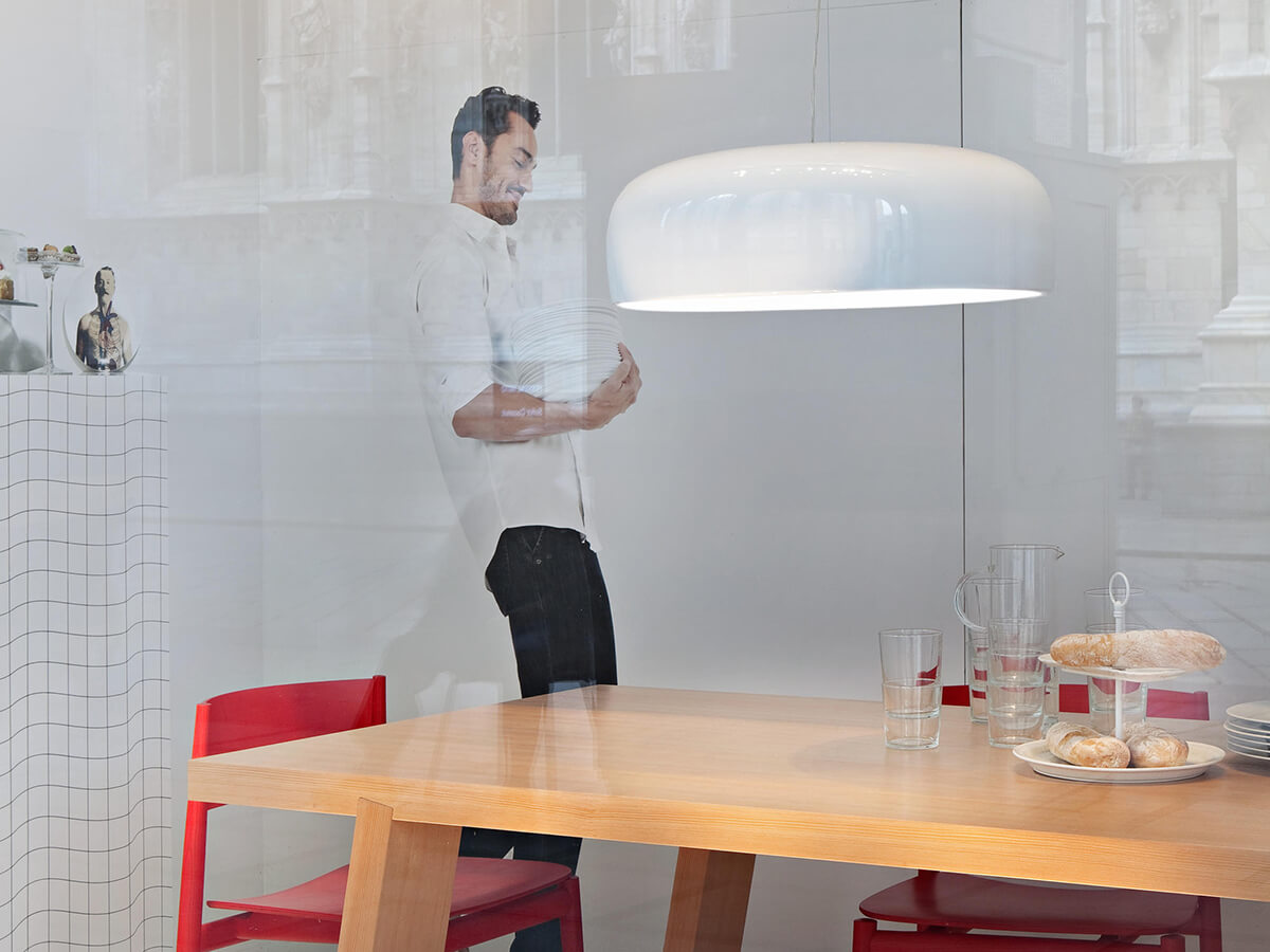 Una lampada capace di trasmettere armonia e semplicità, adattandosi al gusto di qualunque ambiente della casa senza risultare mai eccessiva o fuori contesto. Smithfield nasce da un corpo in alluminio disponibile in diverse versioni e colorazioni. Il diffusore è stampato a iniezione in metacrilato opalino. Le diverse misure disponibili garantiscono di poter collocare Smithfield a piacere, avendo cura di commisurare l’effetto estetico più idoneo che si desidera raggiungere. Nella versione bianca e nera si distingue per la grazie e semplicità colme di stile.