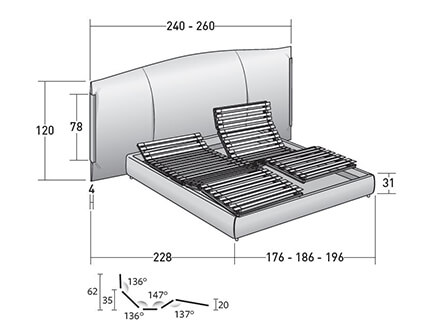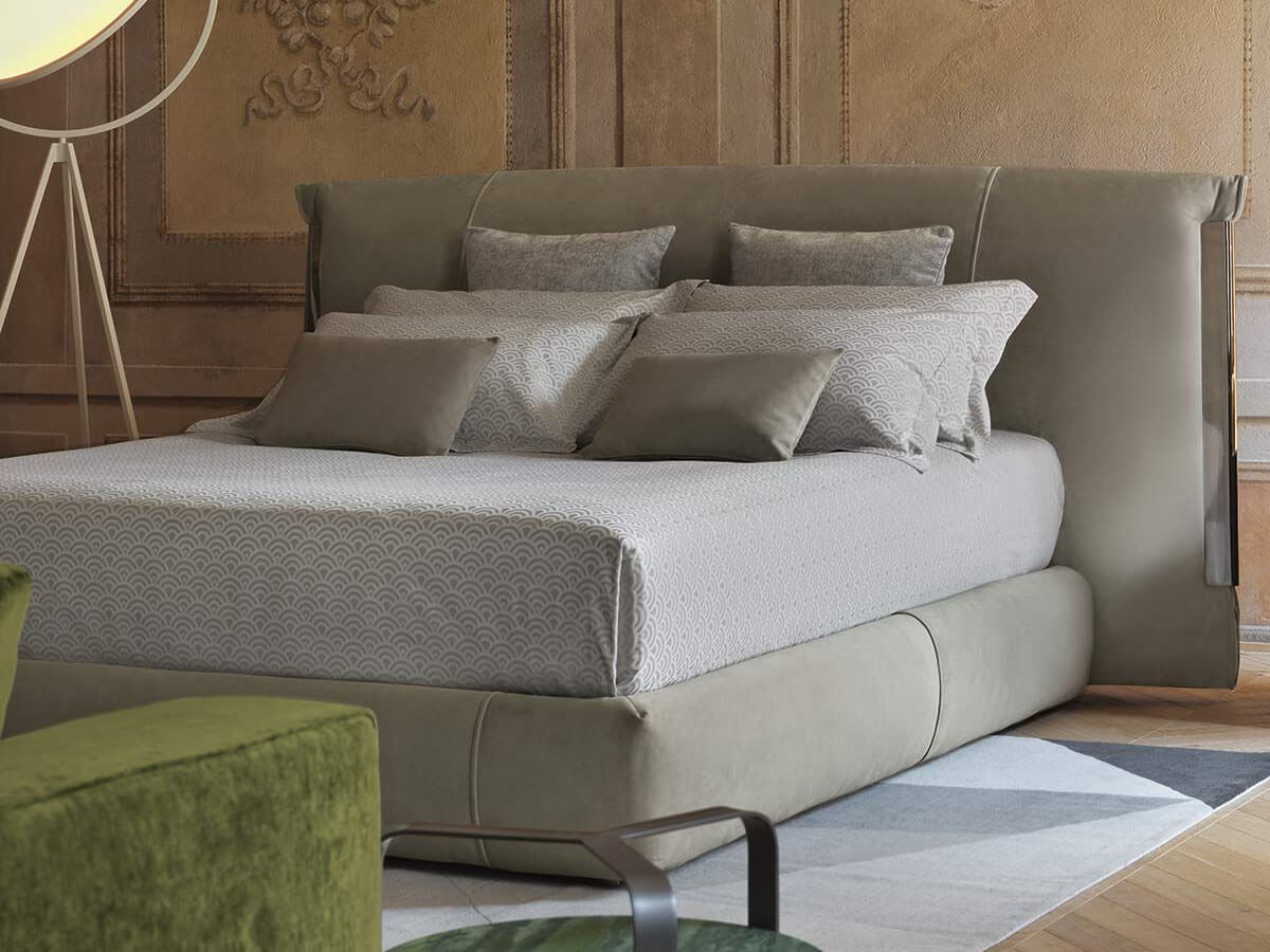 Un letto importante, capace di soddisfare i gusti più esigenti per chi desideri gustare il proprio spazio relax senza tralasciare una punta di stile. Amal si inserisce perfettamente in ambienti di classe, nobilitando gli spazi con l’elegante dettaglio dei profili metallici posti sui lati della testata come delle “pinze”. I numerosi rivestimenti proposti da Flou sono appositamente studiati per adattarsi alle finiture oro, nickel e molti altri. Questo importante elemento d’arredo è disponibile con base contenitore o con movimento elettrico, peculiare per esaltarne ancor più la comodità e versatilità. La base e la testata sono totalmente sfoderabili e comprendono anche rivestimenti in ecopelle. *Caratteristiche tecniche: profili laterali testata in metallo oro lucido, brunito opaco e nickel nero lucido