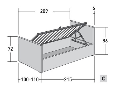 Con Testata Alta H.86 cm e Pediera Bassa H.72 cm (Versione C)