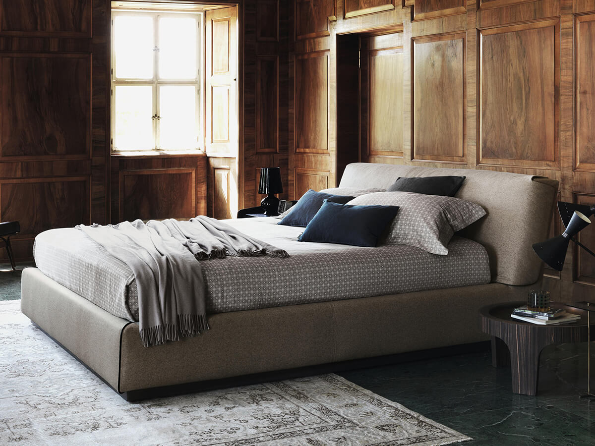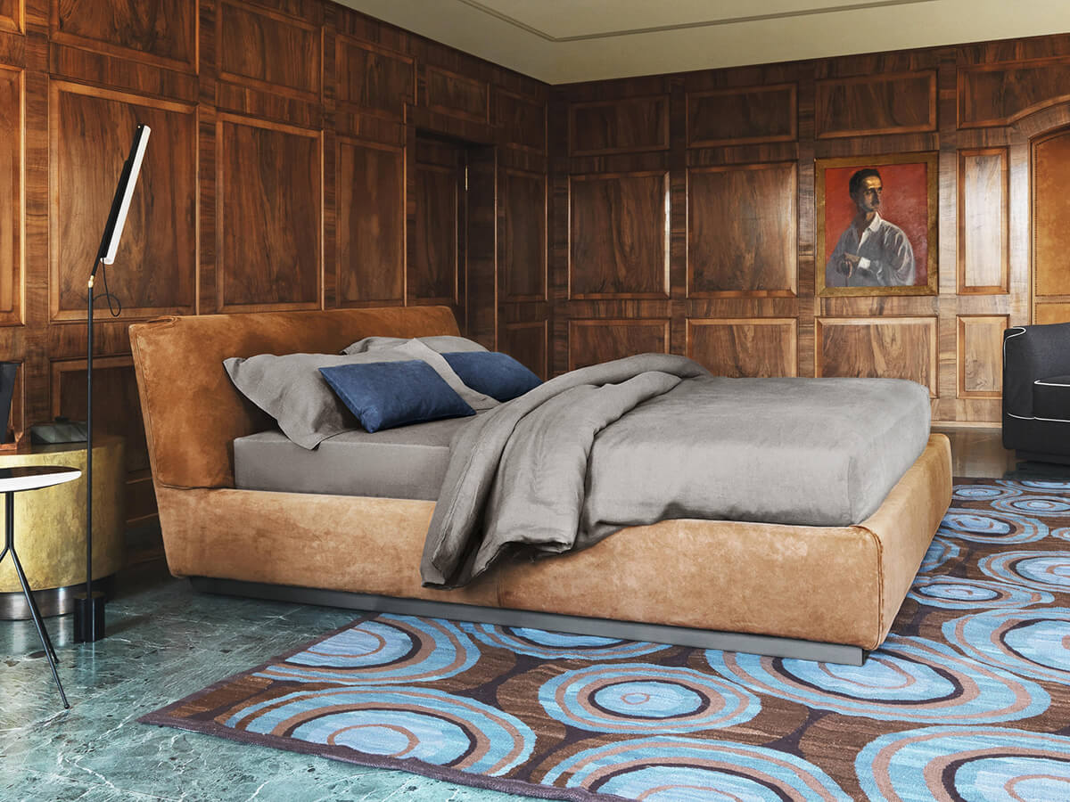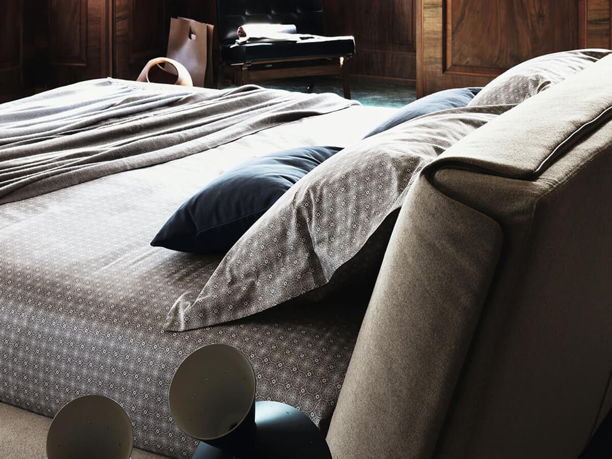 Un letto il cui nome evoca già lusso, gusto e una ricerca volta a raggiungere il punto più alto della qualità artigianale Made in Italy. Disponibile con testata alta o bassa, Gentleman offre una fisionomia solida e accogliente, priva di angoli duri ma ingentilita dalla scelta di imbottiture generose. Il rivestimento prevede una seconda copertura amovibile imbottita per la testata. Un ulteriore elemento peculiare è il cordonetto lungo gli angoli della base e lungo il perimetro della seconda copertura. Come sempre, Flou rende i rivestimento dei propri letti interamente sfoderabili per agevolare la manutenzione e durabilità nel tempo. *Caratteristiche tecniche: testata caratterizzata da una seconda copertura amovibile imbottita. Cordonetto perimetrale a contrasto oppure ton-sur-ton
