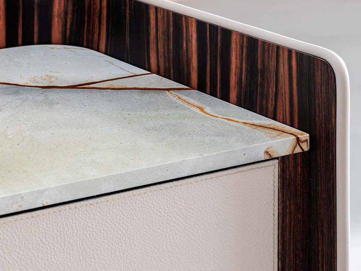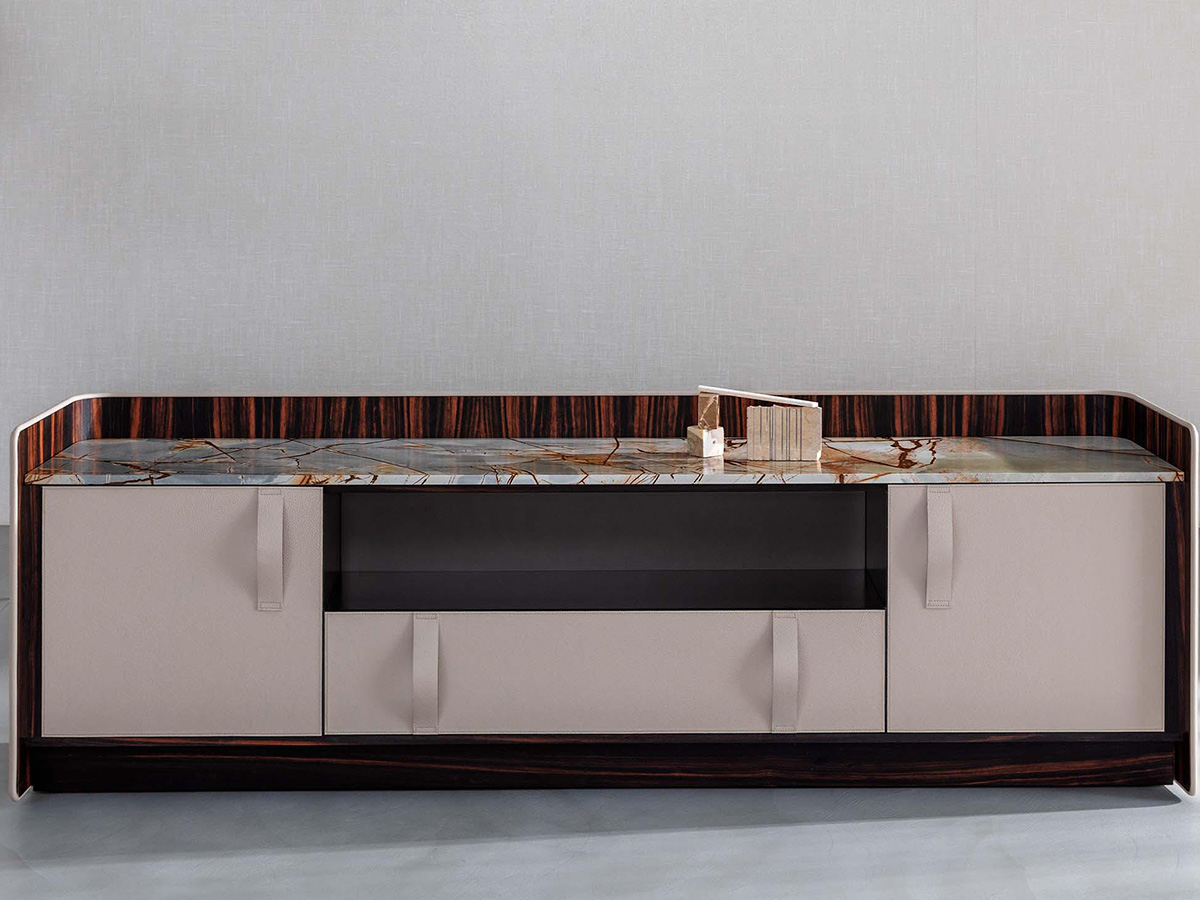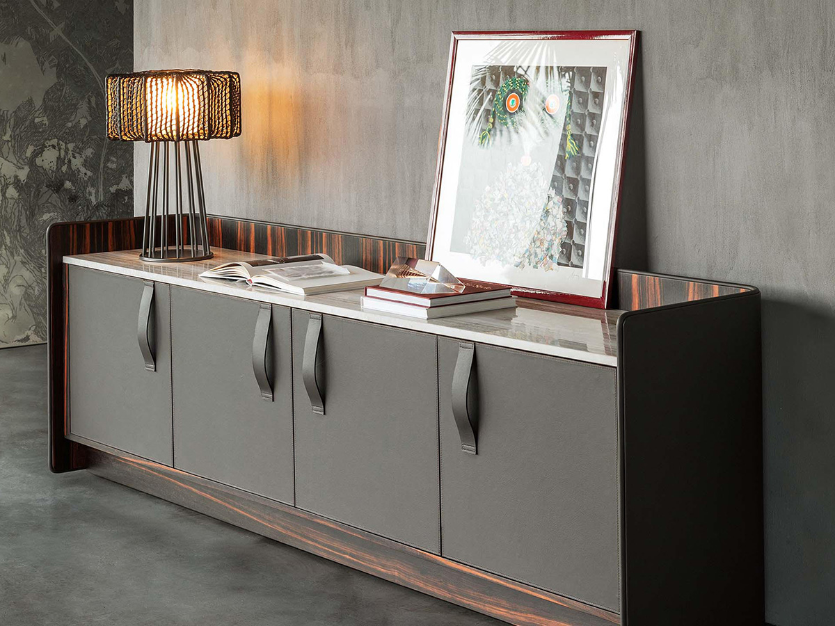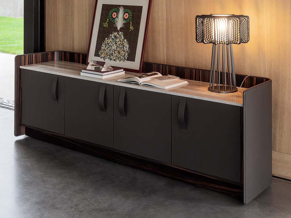 Una madia dal design accattivante, che rivaluta il concetto di eleganza estendendolo anche a un funzionalismo unico, senza riserve. Gentleman è un contenitore discreto che trova posto in numerosi contesti giorno dai più ai meno formali, comprese sale d’attesa, uffici e molto altro ancora. La cura dei dettagli ordita da Flou crea un elemento unico, dove forte si percepisce la complessità strutturale e dei materiali annichilita tuttavia da un rigore geometrico difficilmente imitabile. Personalizzabile in numerose parti, Gentleman spicca per il top in ebano e marmo nonché per i cassetti liberamente collocabili a seconda della necessità. La risultante è come sempre lussuosa e peculiare, ideale per chi sia alla ricerca di uno stile nuovo.