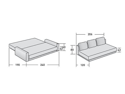 L.240 x P.120 (aperto P.190) x H.80 cm