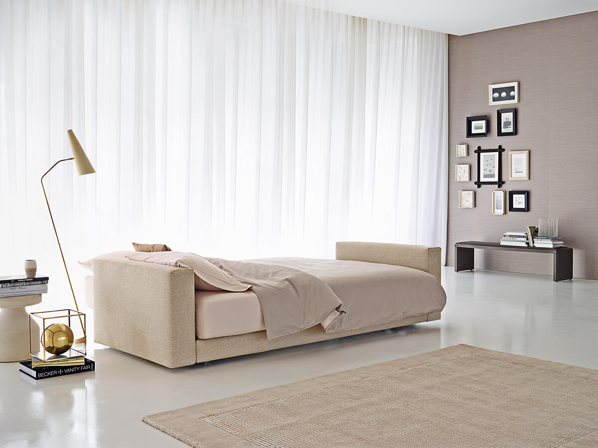Un elemento d’arredo la cui principale caratteristica di versatilità lo colloca in ambienti diversificati dove sia richiesto un duplice uso di ogni spazio. PiazzaDuomo è una sintesi ideale tra divano e letto, entrambi connotati da uno studio di forme e misure così da migliorarne non solo la resa estetica ma anche l’utilizzo a seconda delle necessità. La base a doghe con materasso a molle o Memoform assicura comodità di seduta e riposo nelle ore notturni. I braccioli e la seduta sono rivestibili in tessuto, pelle o Ecopelle e completamente sfoderabili, particolarità non indifferente soprattutto in un modello come questo. Grazie al velcro, questa operazione è stata resa estremamente semplice e rapida.