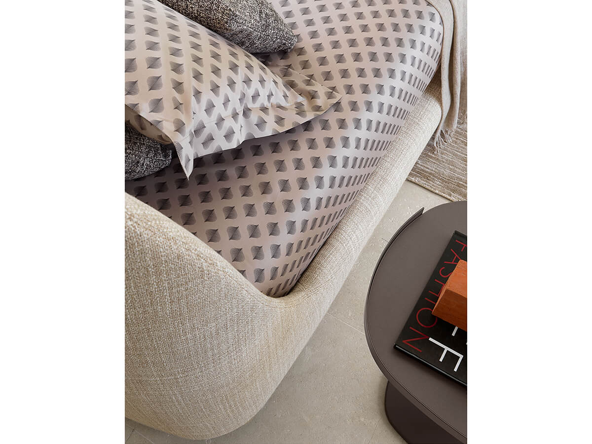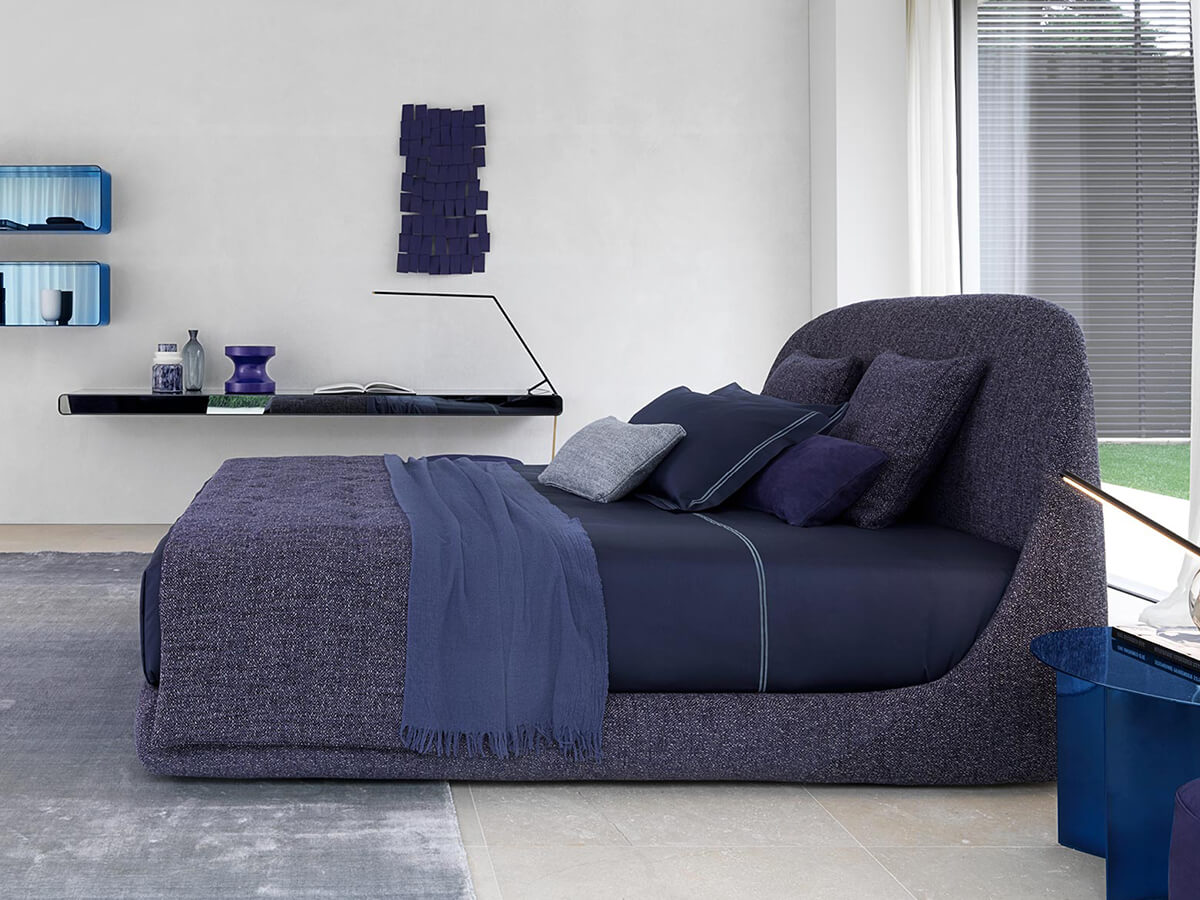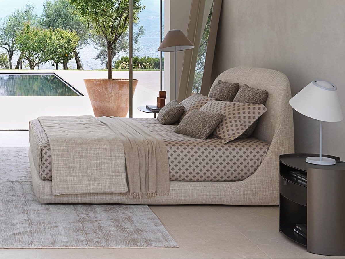 Caratterizzato da un design che invita al relax e all’intimità, il letto matrimoniale Taormina , prodotto dal noto brand Flou, è in grado di accogliere materassi dal comfort elevato e dalle altezze importanti o completati da topper. Il giroletto di altezza contenuta sale senza soluzione di continuità a formare la testata con una curva morbida ed avvolgente, sottolineata dalla cucitura a vista che corre lungo tutto il perimetro. La base è a molle insacchettate mentre il rivestimento in tessuto o in pelle è completamente sfoderabile. Le proporzioni di Taormina sono studiate appositamente per arredare la camera da letto con armonia ed eleganza.