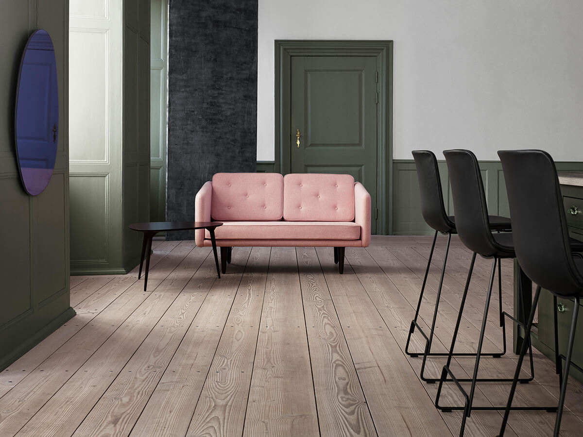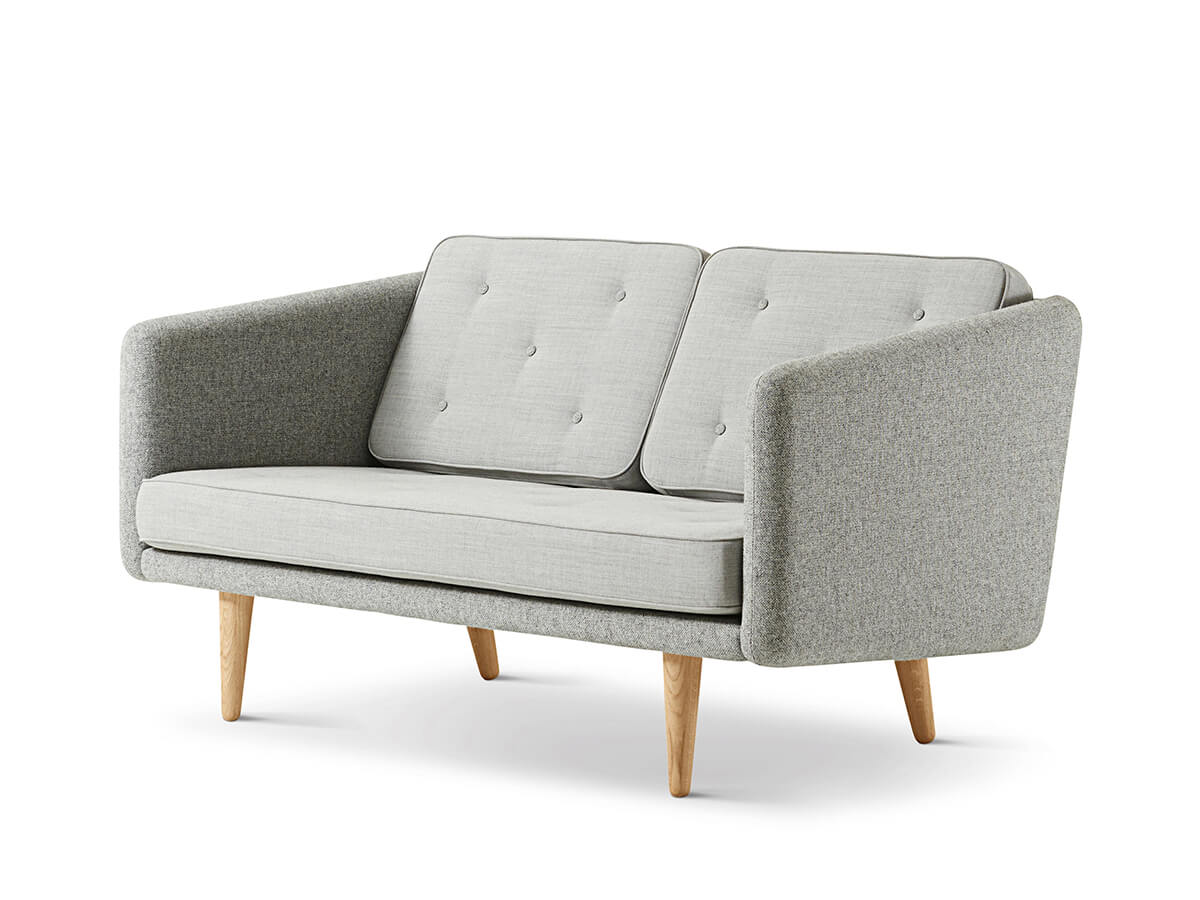 Il divanetto No.1 di Fredericia incarna al meglio il gusto scandinavo per l’imbottito, fatto di proporzioni ridotte e un look amichevole ed accogliente unito a un’attenzione per i dettagli vezzosi, costituiti in questo caso dai bottoni dei cuscini dello schienale che risultano fortemente enfatizzati con grandi valenze decorative. Sospeso da terra tramite alti piedini in legno, il divano No.1 è disponibile in versione a due posti oppure in versione a tre posti e si fa riconoscere facilmente anche per le linee nette e decise degli alti braccioli. Si tratta inoltre di un prodotto che ha fatto la storia: come suggerito dal nome stesso, è infatti il primo divano disegnato da Børge Mogensen per Fredericia, nel 1955, dando inizio a una collaborazione che sarebbe durata anni.