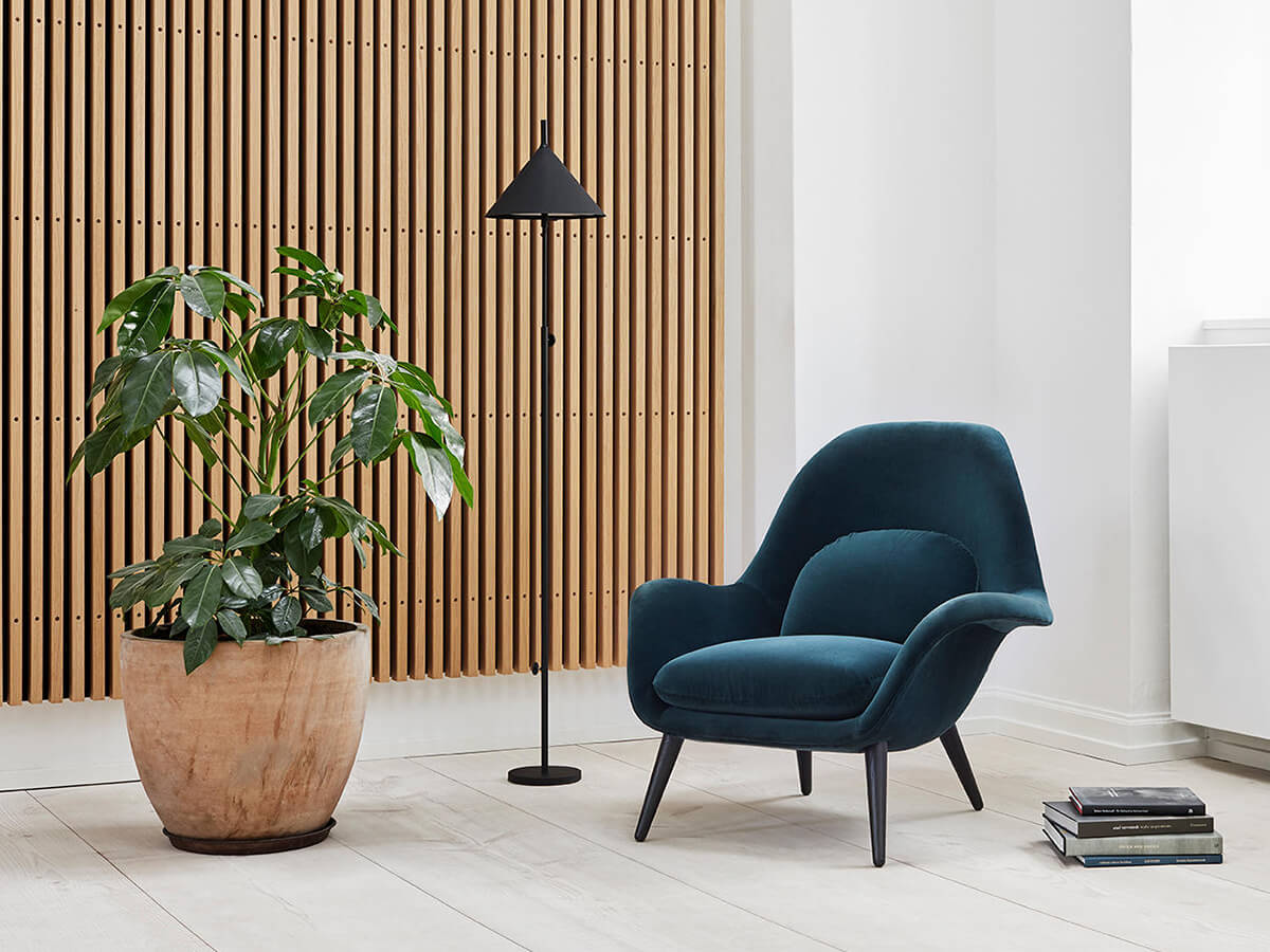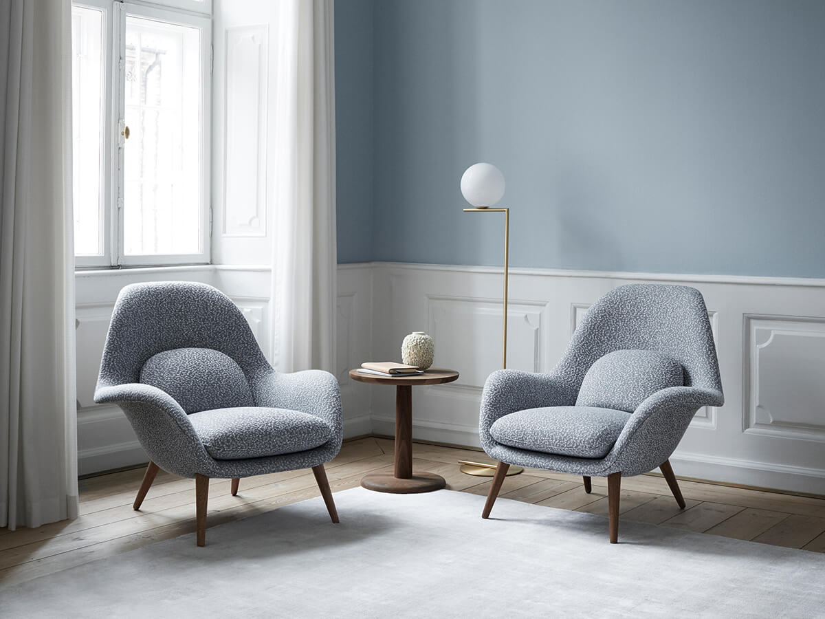 La poltrona Swoon di Fredericia può già essere considerata un classico del nuovo design scandinavo seppur sia stata disegnata soltanto nel 2016. Porta la firma dello studio Space Copenhagen, una delle realtà più interessanti del design danese contemporaneo, con un grande expertise nella realizzazione di ristoranti stellati e hotel di lusso. La poltrona Swoon stessa risulta perfetta sia per realizzazioni contract e spazi comuni che per un ambito domestico, grazie alla forma peculiare della sua scocca che permette una seduta comoda e rilassata a metà strada fra quella di una lounge chair e una bergère. Dal punto di vista stilistico colpisce la curva sinuosa che allarga la scocca verso l’esterno, andando a definire due ampi braccioli. È disponibile anche nella versione Swoon Lounge Petit dalla seduta più stretta, che può essere realizzata sia con base in legno che con base girevole a quattro razze.