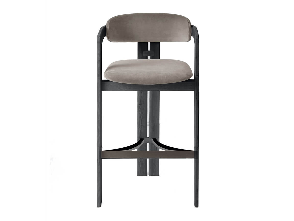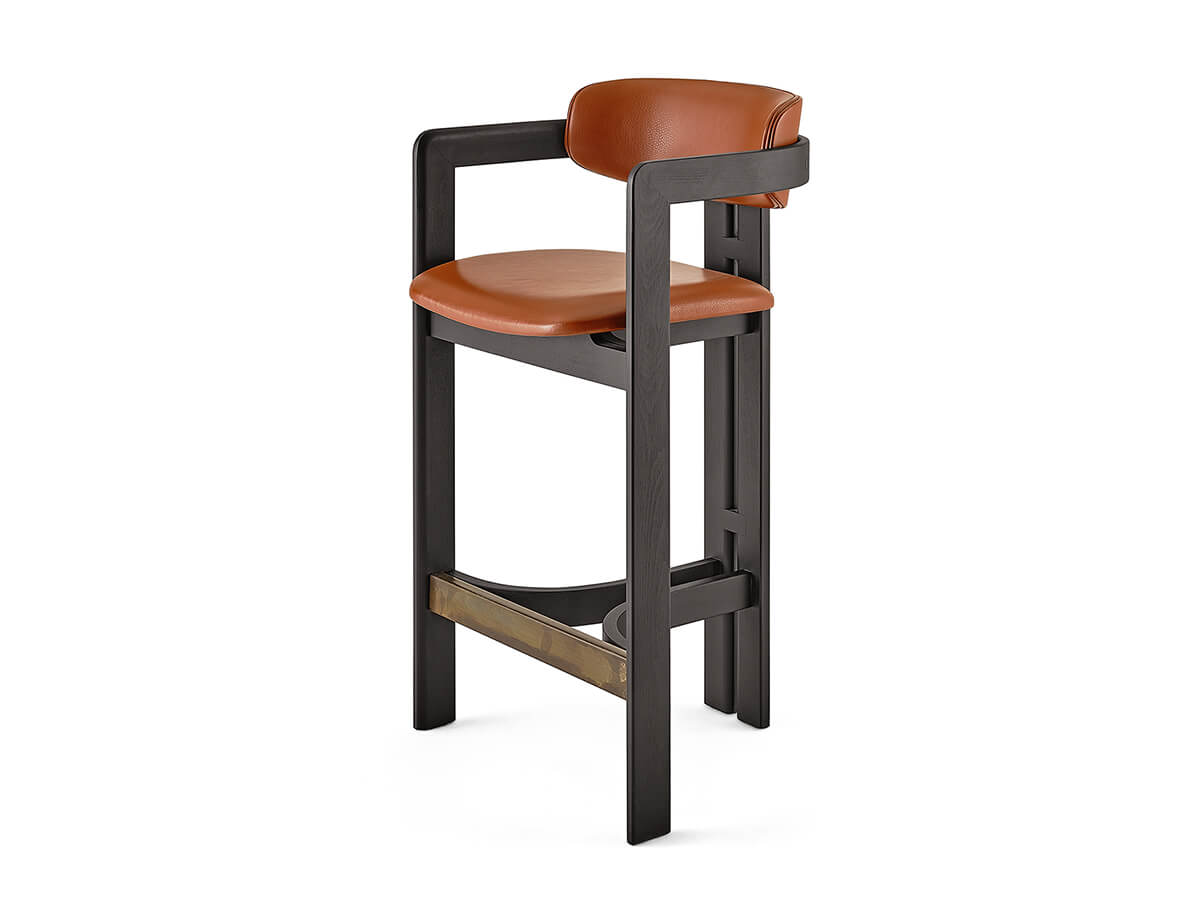 Forme e proporzioni dello sgabello 0419 di Gallotti&Radice rimandano immediatamente ad atmosfere d’antan, nel solco di un revival del design Mid-Century che costituisce una delle tendenze di punta nel mondo dell’architettura d’interni contemporanea. Le sue linee retrò si richiamano chiaramente al gusto degli anni ’50, incarnato nel segno deciso dello schienale bipartito in massello di frassino curvato e tinto a poro aperto, che si prolunga andando poi a formare anche i braccioli ricurvi e le due gambe frontali. Seduta e schienale sono rese più confortevoli dall’imbottitura in poliuretano e sono rivestiti in tessuto o pelle di diversi colori.
