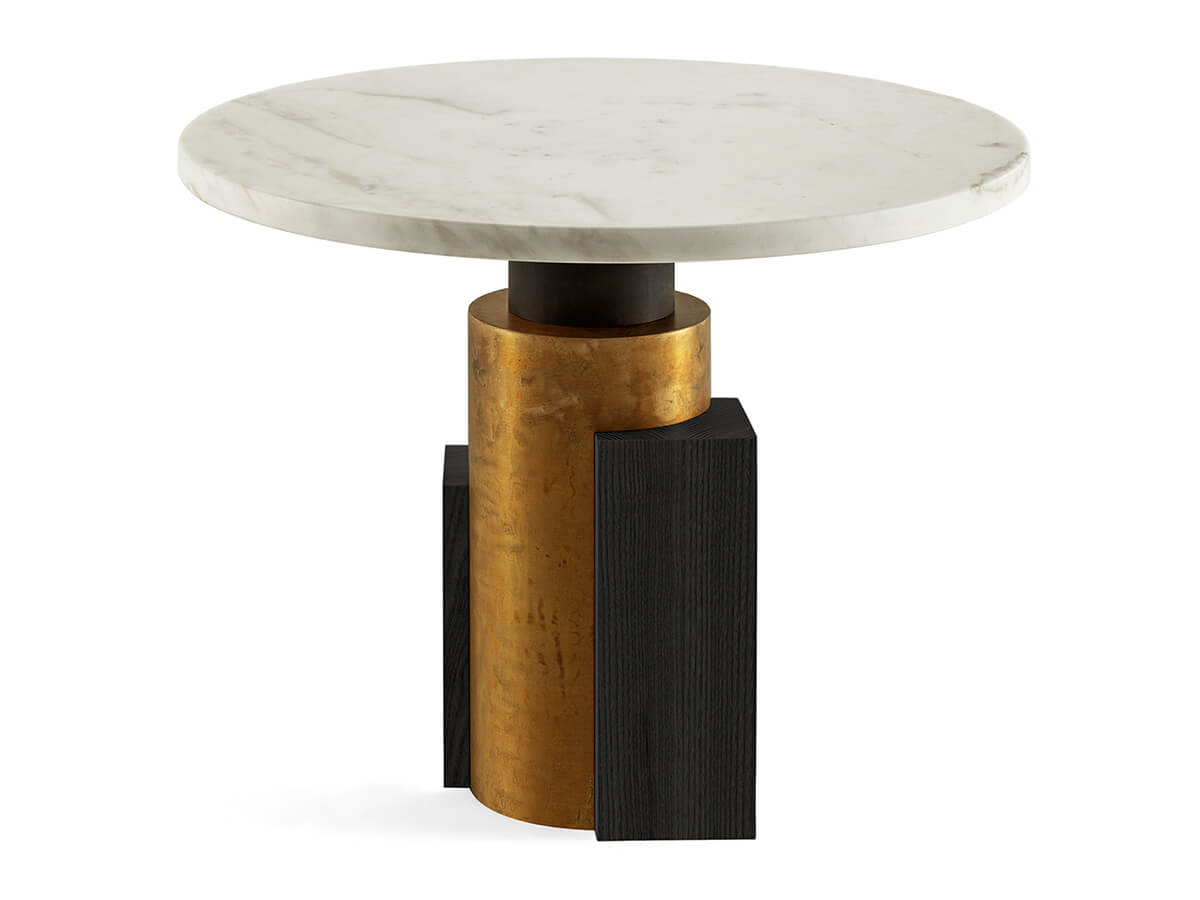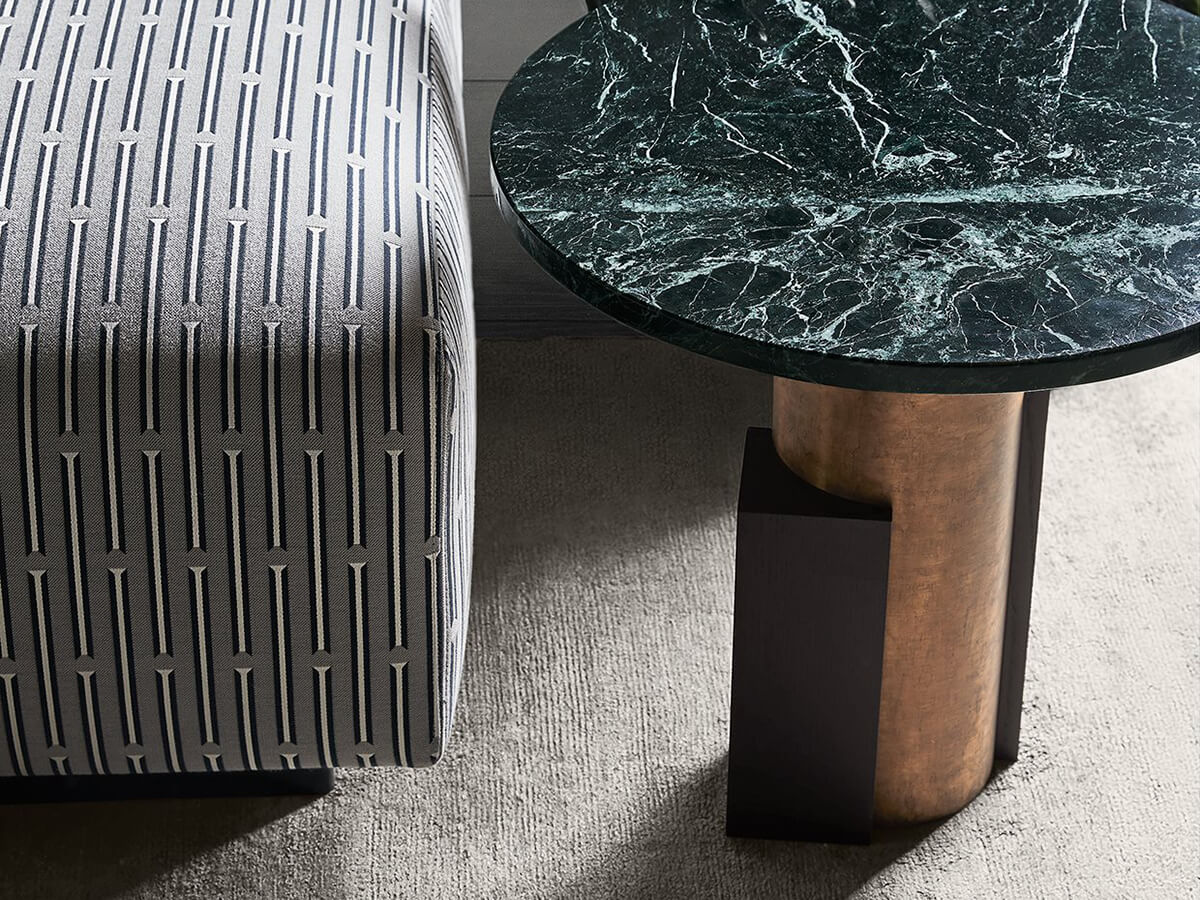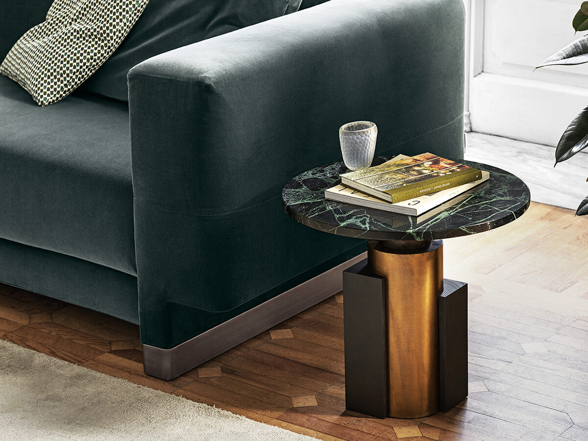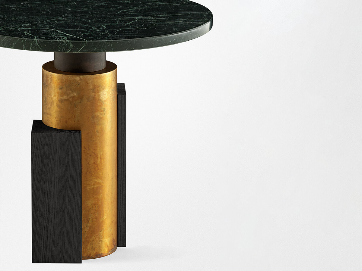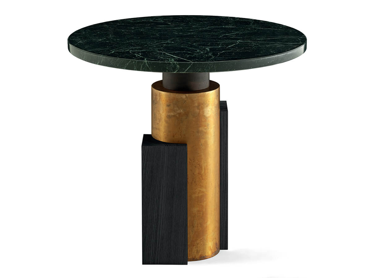 Nel tavolino 1968 di Gallotti&Radice la giustapposizione creativa di materiali differenti dà vita a un prodotto di grande lusso con una propria spiccata personalità. Si tratta di un classico “side table” rotondo, nel quale il piano rotondo in marmo poggia su una composita base in cui ottone brunito a mano e parti in legno laccato a nero poro aperto si uniscono a formare quasi un piccola scultura dinamizzata dall’originale gioco delle proporzioni. 1968 è utilizzabile da solo o in combinazione con altri tavolini della gamma Gallotti&Radice per creare composizioni più ampie e variegate.*Caratteristiche tecniche: struttura in ottone brunito e legno laccato nero