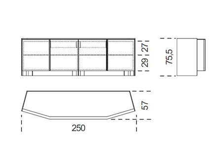 Disponibile anche in L.250 x P.57 x H.75,5 cm