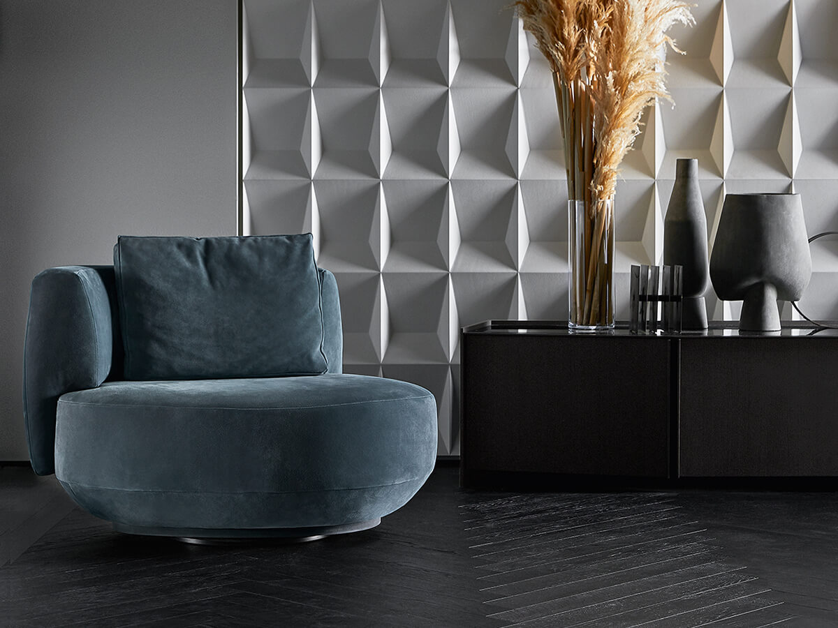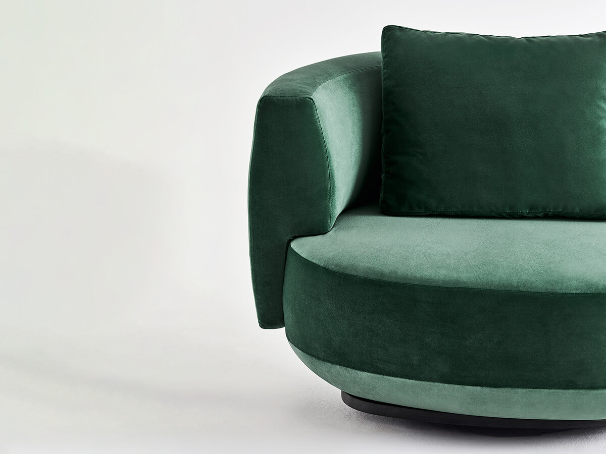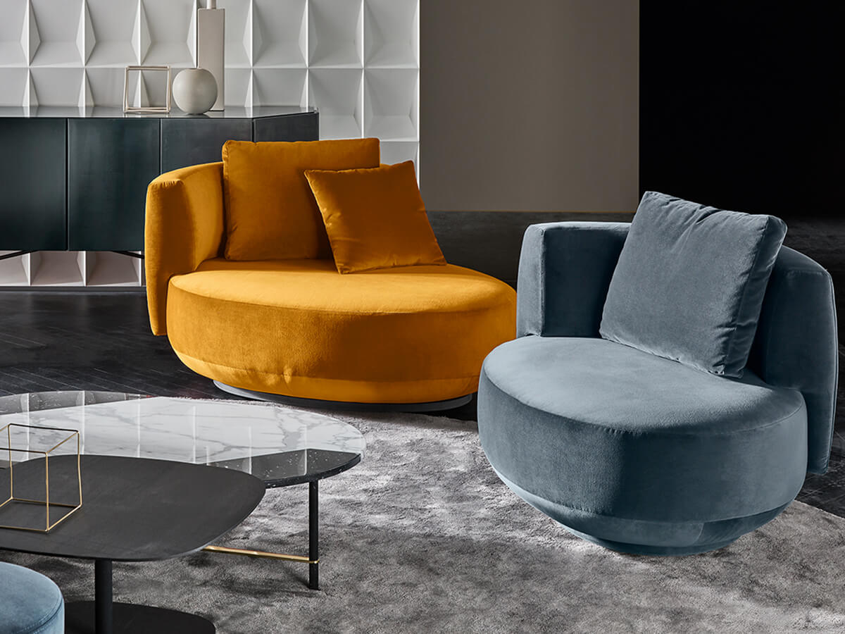 Nella poltrona Audrey di Gallotti&Radice il designr Massimo Castagna riprende gli elementi stilistici distintivi dell’omonima fortunata serie di imbottiti e li applica a una poltroncina girevole dalla forma compatta. La sua base, sempre leggermente ovalizzata, è disponibile in due varianti, una più ristretta e l’altra più allungata, e regge un comodo schienale posteriore che funge anche da sostegno per l’essenziale cuscino posteriore e per i diversi cuscini decorativi che possono essere aggiunti per aumentare ulteriormente il comfort della seduta. La poltrona Audrey è disponibile con rivestimento sia in tessuto che in pelle, nei vari colori del campionario Gallotti&Radice.*Caratteristiche tecniche: base girevole