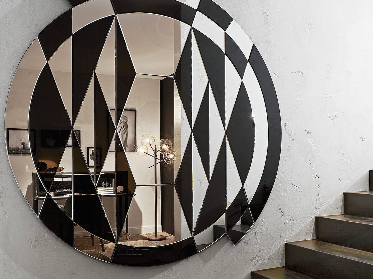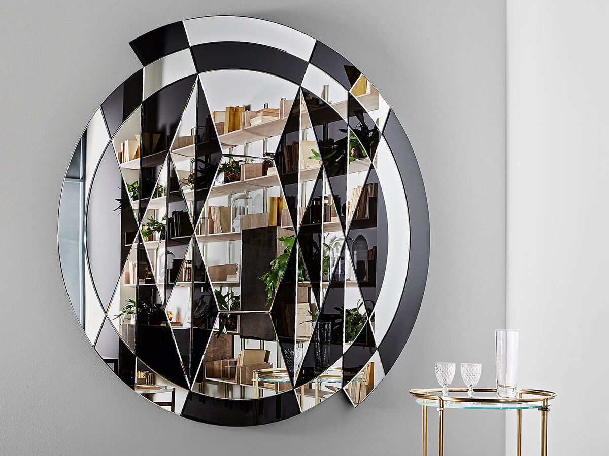 Firmato dal raffinato designer Pietro Russo, lo specchio Black&White Beat di Gallotti&Radice ha una superficie divisa in diversi frammenti che creano un complesso gioco geometrico. In un richiamo solo parzialmente simmetrico si alternano così sezioni specchianti ad altre retroverniciate nel colore nero brillante, con un effetto ottico di grande pregio decorativo. Black & White Beat è dunque una complessa opera artigianale, composta dal’attenta inserzione di ben 42 diversi cristalli che subiscono poi una procedura di bisellatura e lucidatura a mano. Con il suo gusto eclettico e sorprendente, vagamente Art Decò, Black&White Beat costituisce un’aggiunta di forte personalità per ogni genere di ambiente.*Caratteristiche tecniche: specchio extralight composto da 42 cristalli specchiati e retroverniciati nero brillante