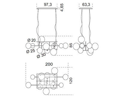 L.200 x P.120 x H.85 cm con 10 Sfere
