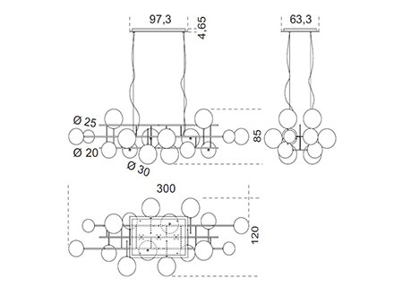 L.300 x P.120 x H.85 cm con 16 Sfere