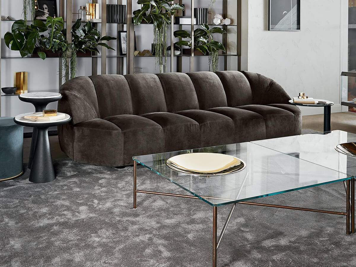 Il divano Cloud di Gallotti&Radice assomma al contempo un’impressione di soffice accoglienza alle forme compatte tipiche dello stile del suo designer Massimo Castagna. Cloud poggia direttamente a terra, adagiandosi su piccoli piedini non visibili in legno laccato nero, ed estende i suoi volumi solidi e imponenti nella ripetizione di un unico modulo scandito dalle cuciture, richiamando la scansione di singole sedute tipica di grandi classici come l’Endless Sofa DS-600, immortale capolavoro del design svizzero. Più imponente e severo rispetto al modello, la sua ricca imbottitura in poliuretano espanso indeformabile a densità differenziate e fibra poliestere gli conferisce anche una maggiore morbidezza e comodità, in un invito al relax che può essere enfatizzato dall’aggiunta di cuscini decorativi opzionali. Il rivestimento è disponibile sia in tessuto che in pelle.*Caratteristiche tecniche: piedini in legno laccato nero