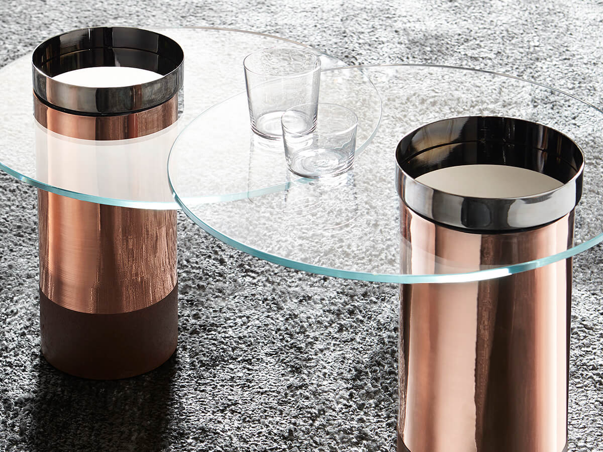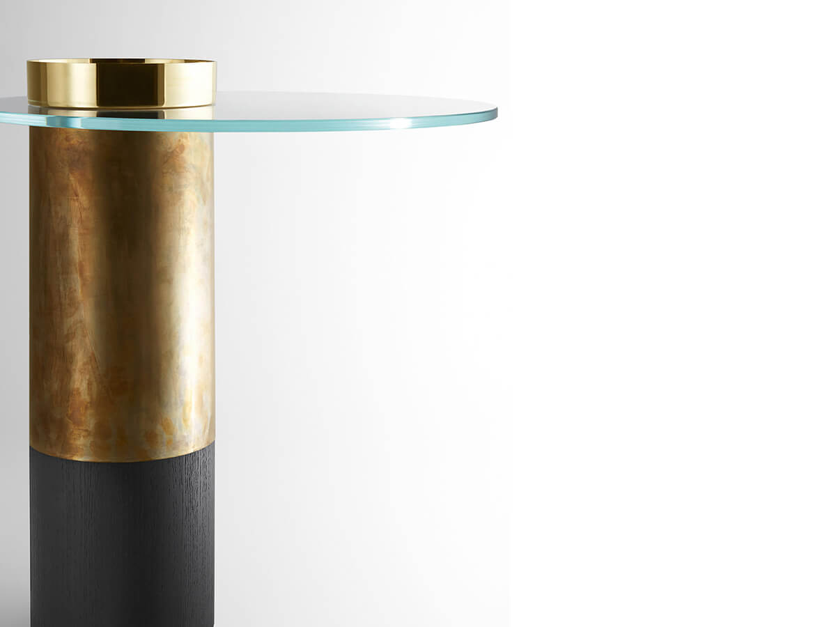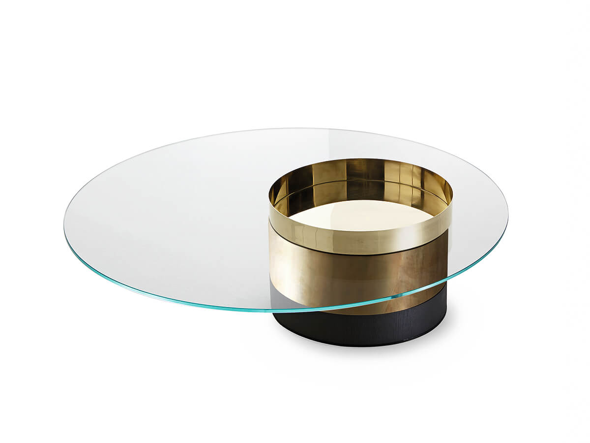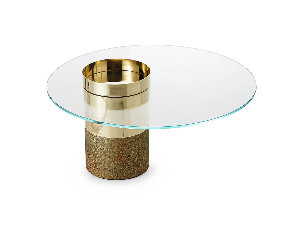 Il tavolino Haumea di Gallotti&Radice trae il suo nome esotico dal pantheon della mitologia hawaiiana, in cui la dea Haumea era simbolo della fertilità. Con le sue forme iconiche e inusuali si è presto imposto come uno dei bestseller del brand, incarnandone al meglio anche la filosofia estetica che vede spesso giustapposte le trasparenze del cristallo con lo scintillio di metalli come l’ottone. In Haumea il cristallo è riservato all’ampio piano circolare, sorretto da un voluminoso sostegno rotondo in legno e metallo che trova posizione in un punto leggermente sfalsato rispetto al centro del piano. *Caratteristiche tecniche: piano in cristallo extralight; parti metalliche in ottone lucido, brunito, ramato o cromato nero disponibili in combinazioni fisse.