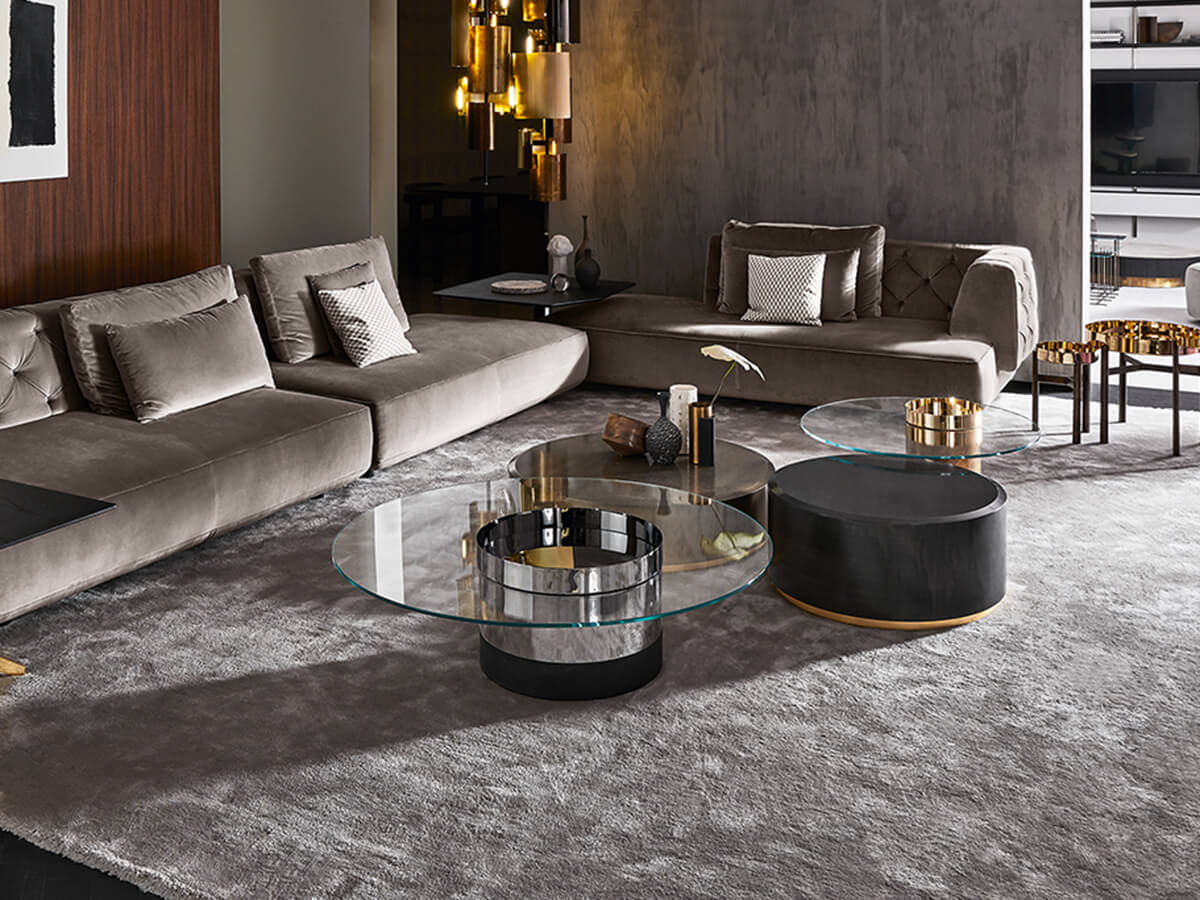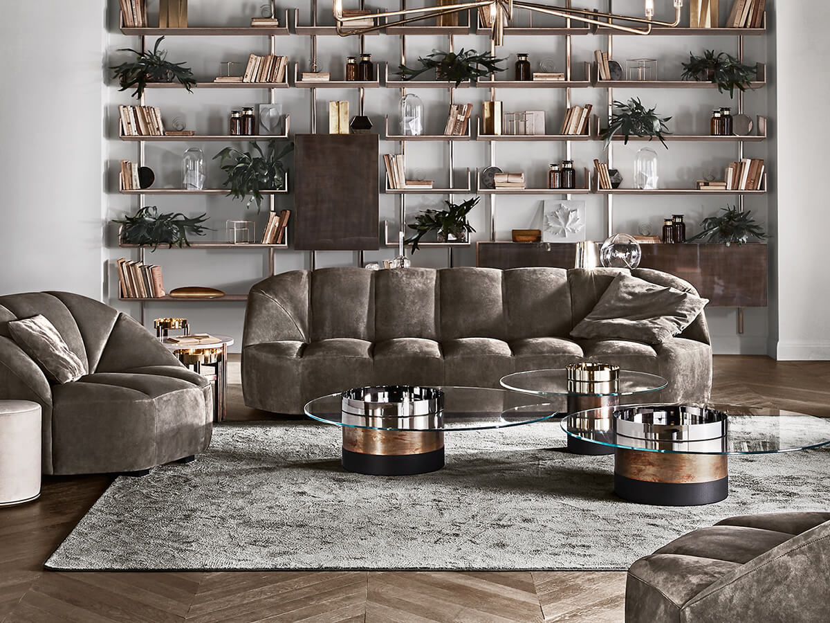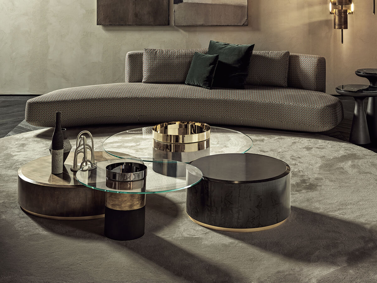 Il tavolino Haumea di Gallotti&Radice trae il suo nome esotico dal pantheon della mitologia hawaiiana, in cui la dea Haumea era simbolo della fertilità. Con le sue forme iconiche e inusuali si è presto imposto come uno dei bestseller del brand, incarnandone al meglio anche la filosofia estetica che vede spesso giustapposte le trasparenze del cristallo con lo scintillio di metalli come l’ottone. In Haumea il cristallo è riservato all’ampio piano circolare, sorretto da un voluminoso sostegno rotondo in legno e metallo che trova posizione in un punto leggermente sfalsato rispetto al centro del piano. *Caratteristiche tecniche: piano in cristallo extralight; parti metalliche in ottone lucido, brunito, ramato o cromato nero disponibili in combinazioni fisse.