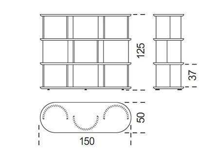 L.150 x P.50 x H.125 cm – Versione con Cilindri Fissi
