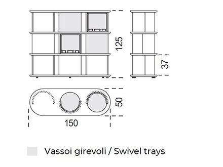 L.150 x P.50 x H.125 cm – Versione con Cilindri Girevoli