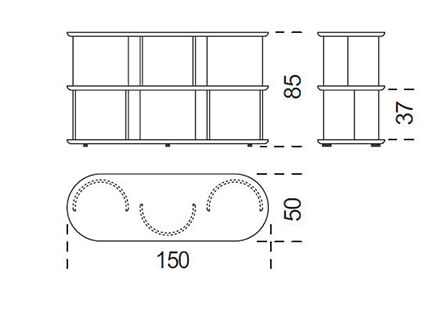 L.150 x P.50 x H.85 cm – Versione con Cilindri Fissi
