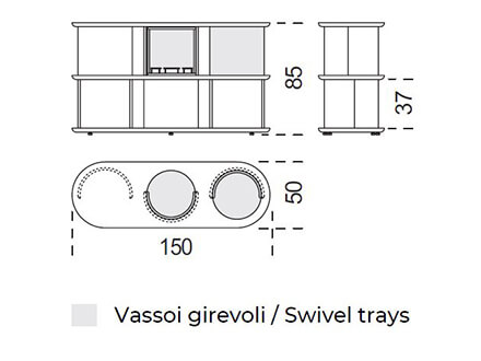 L.150 x P.50 x H.85 cm – Versione con Cilindri Girevoli